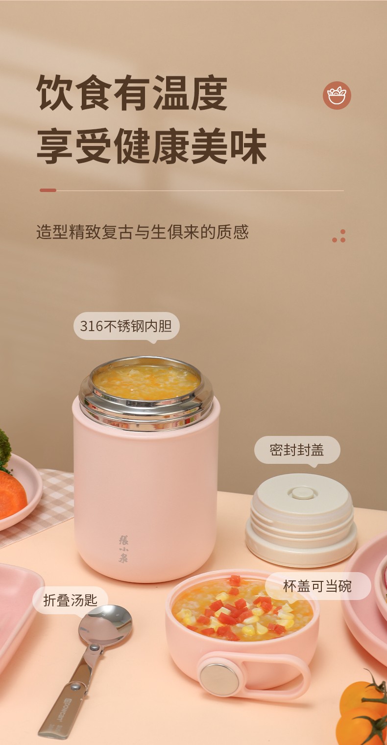 张小泉 泉心随享焖烧罐(樱花粉)C42800100 保温罐 600ml