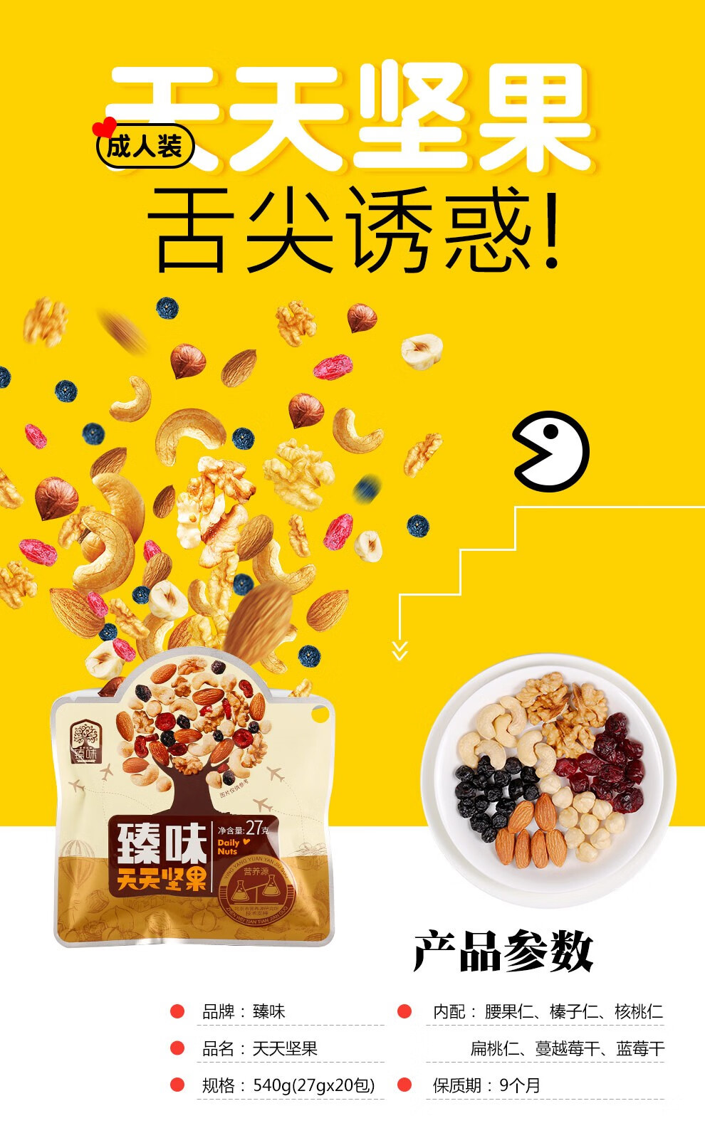 臻味 每日坚果礼盒休闲零食混合干果大礼包 天天坚果年货好礼企业团购 540g天天坚果(B款)