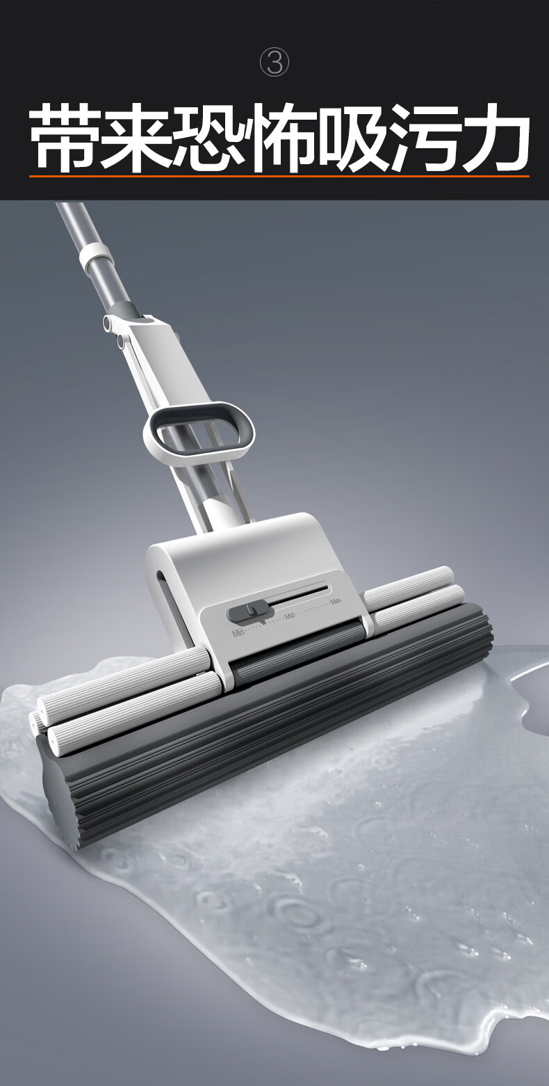 大卫新款海绵拖把家用一拖净大号吸水地拖滚轮式胶棉大号拖布免手洗净 老公款(共2个头)【店长推荐】