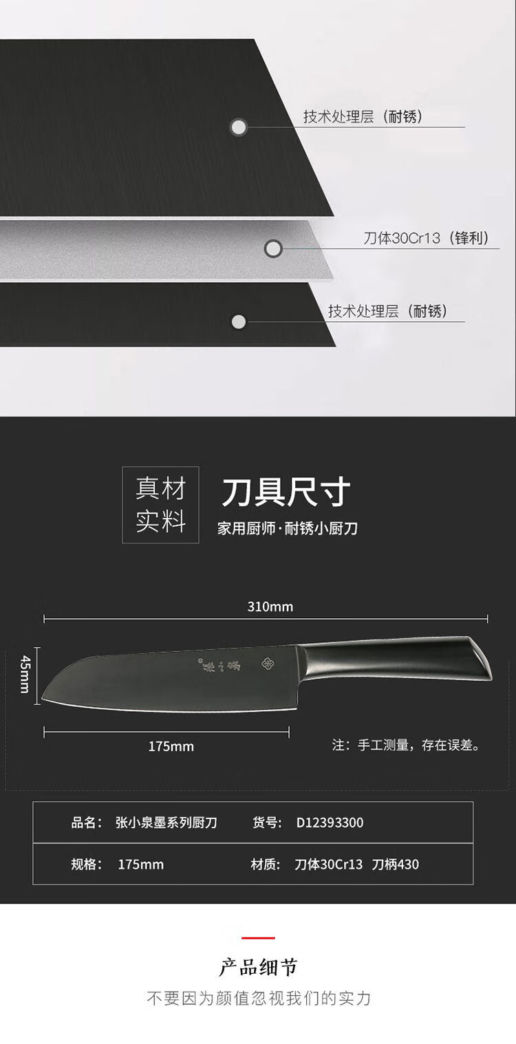 张小泉菜刀切片刀不锈钢家用水果刀厨房锋利切肉刀具耐锈黑刀女士小厨刀 多用刀切菜刀