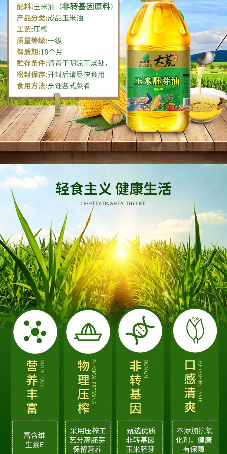 大荒印象 一级压榨玉米胚芽油 玉米胚芽油5L