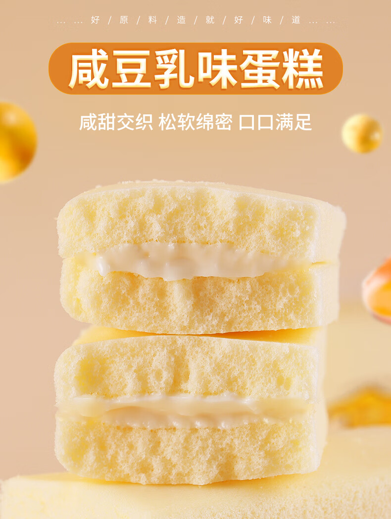 满格华夫半咸豆乳蛋糕 网红零食下午茶糕点营养早餐夹心蛋糕 1箱 380g