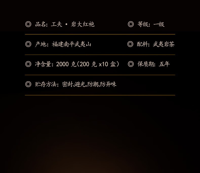 瑞泉岩茶 工夫岩大红袍整件装 武夷山瑞泉岩正岩乌龙茶茶叶礼盒装 岩大红袍整件装200g*10盒