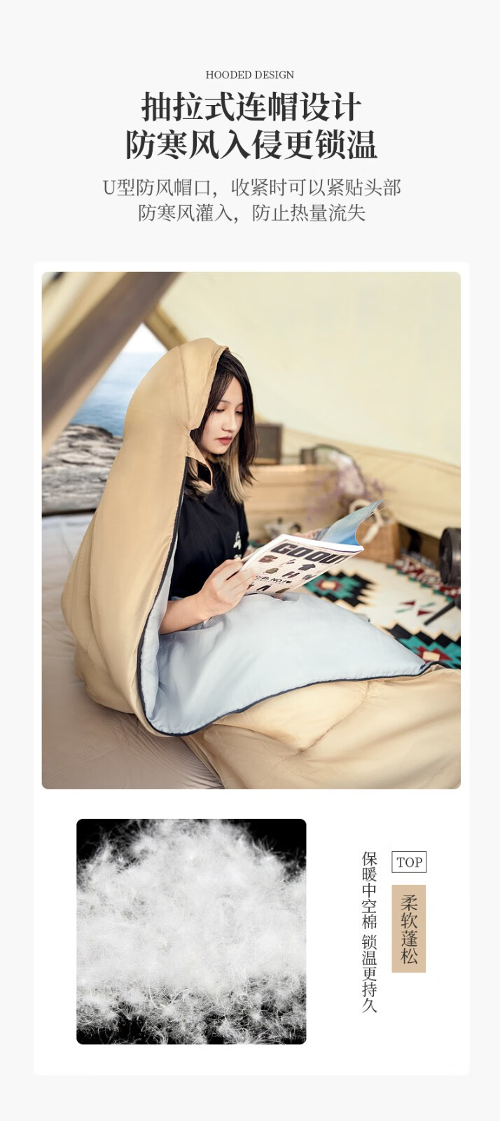 清系 户外睡袋露营便携式加厚睡...