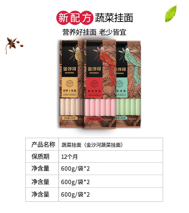 金沙河 金沙河传家好面蔬菜挂面礼盒装 面