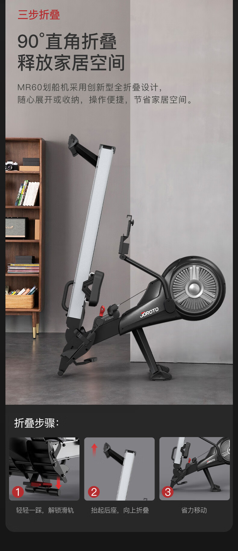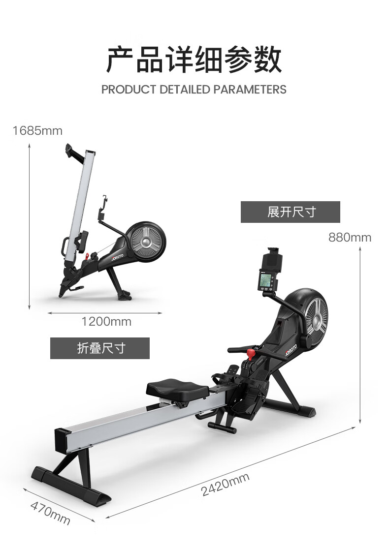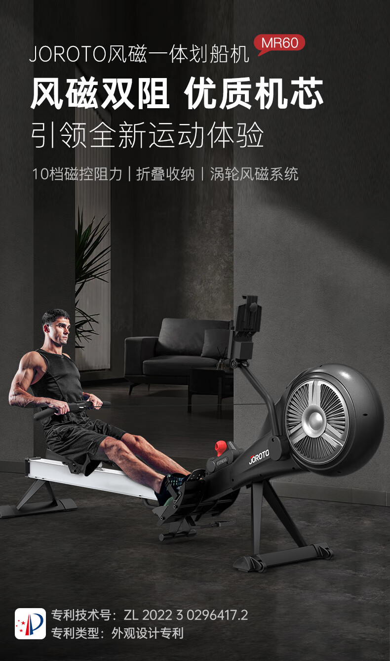 捷瑞特JOROTO美国品牌风阻划船机可折叠轻商用风磁双阻划船器MR60 家用商用均可