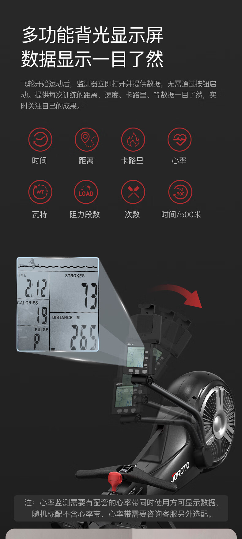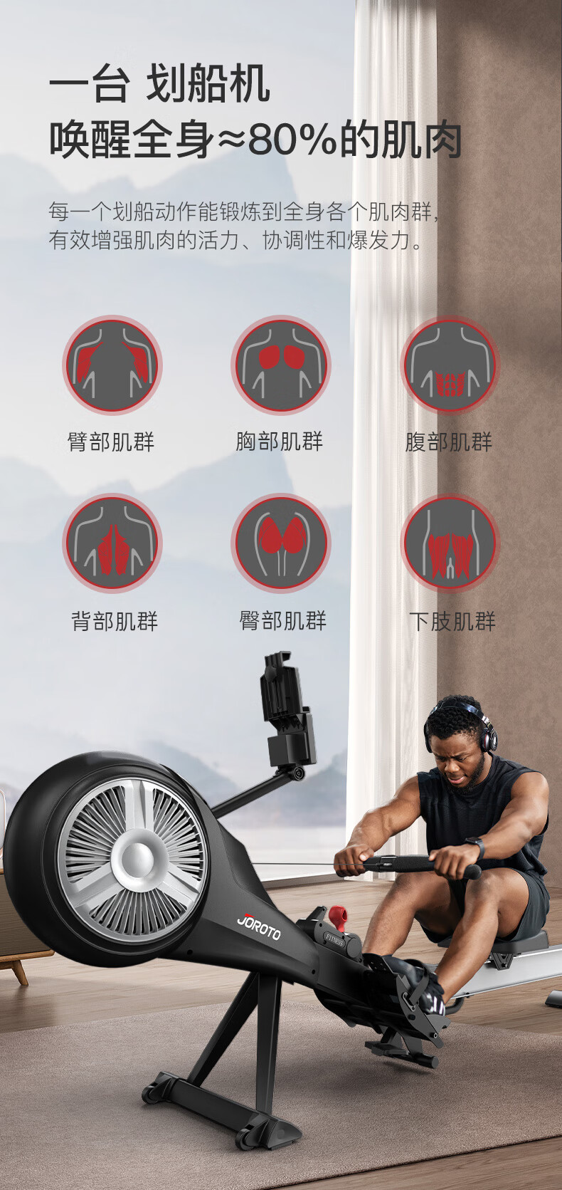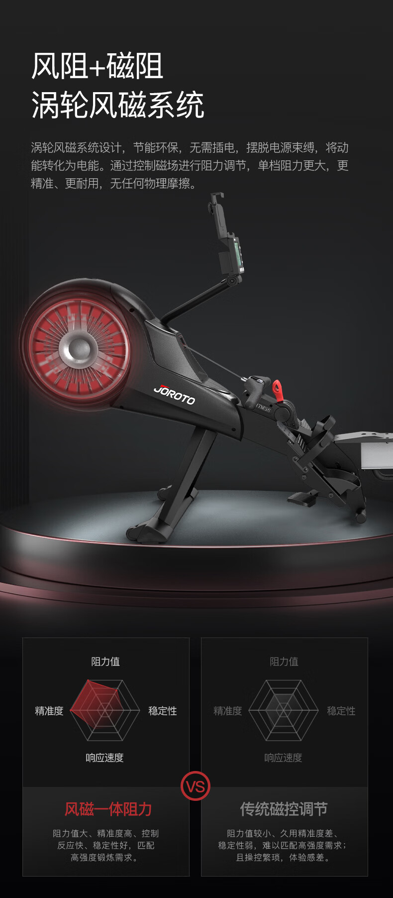 捷瑞特JOROTO美国品牌风阻划船机可折叠轻商用风磁双阻划船器MR60 家用商用均可