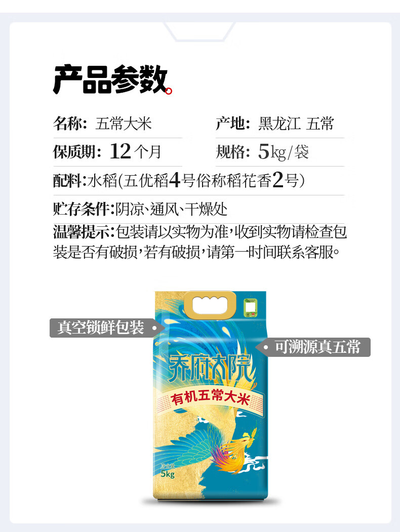 金福乔府大院(QIAOFUDAYUAN) 乔府大院 东北五常有机大米正宗稻花香2号5kg