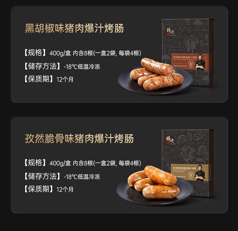 锋味派火山石烤肠纯肉香肠早餐火...