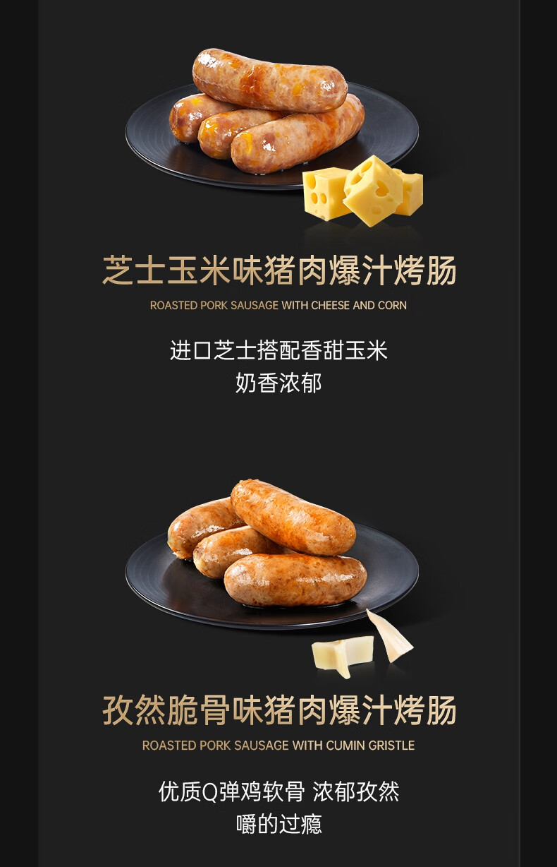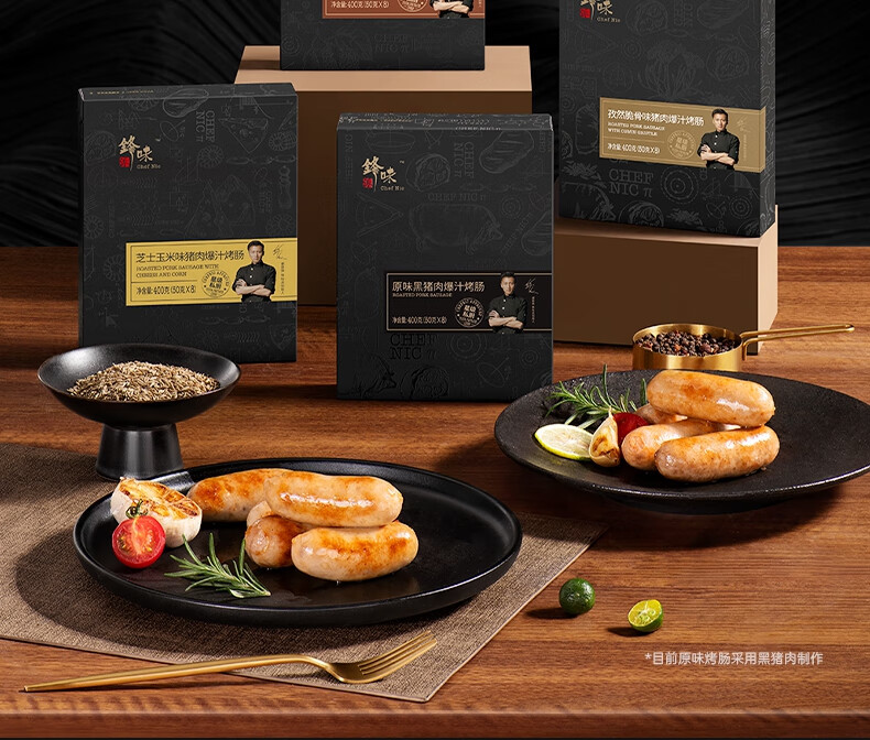 锋味派火山石烤肠纯肉香肠早餐火腿肠台式肉肠爆汁脆皮肠空炸烧烤食材 原味黑猪肉*3 通用