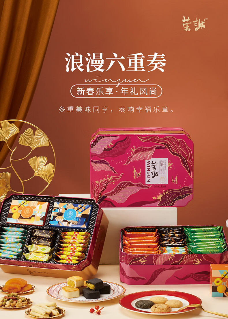 荣诚(Winsun)浪漫六重奏23年年货零食大礼包春节送礼曲奇糕点蛋卷下午茶小吃