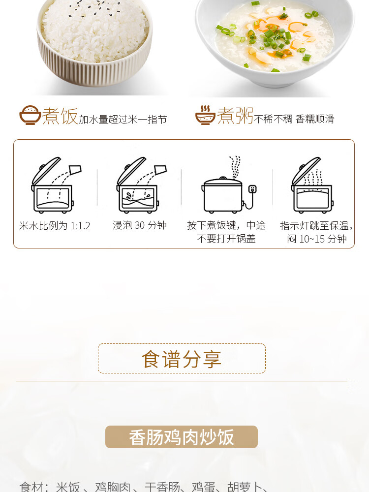 美的(Midea)电饭煲电饭锅4升匠铜聚能釜可拆洗内盖24小时预约定时MB-SN466