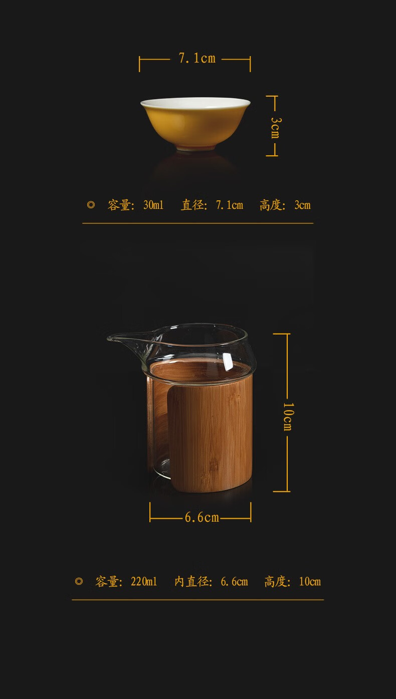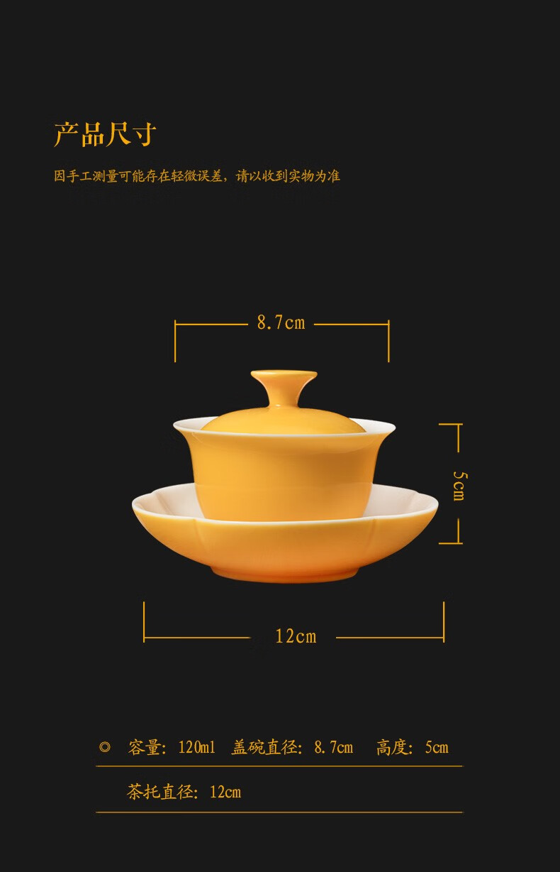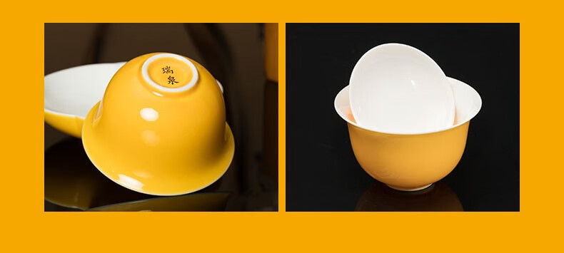 瑞泉岩茶 白瓷功夫茶具套装 专用盖碗/公道杯/品茗杯 黄色茶具