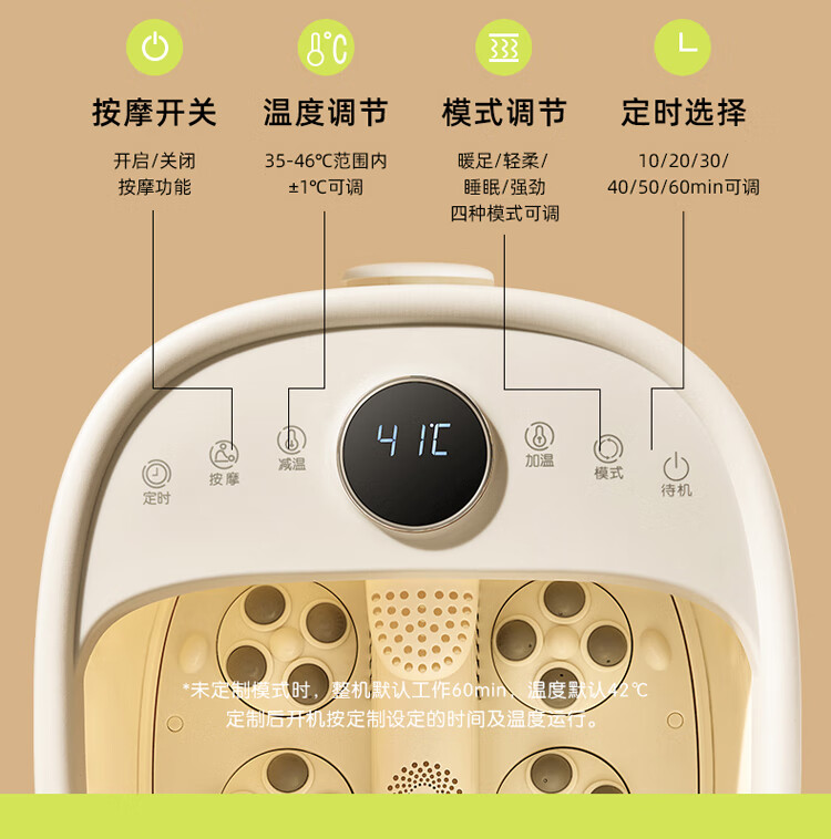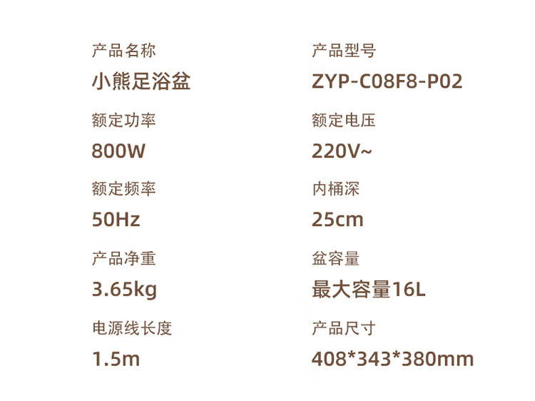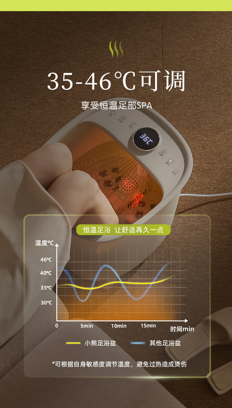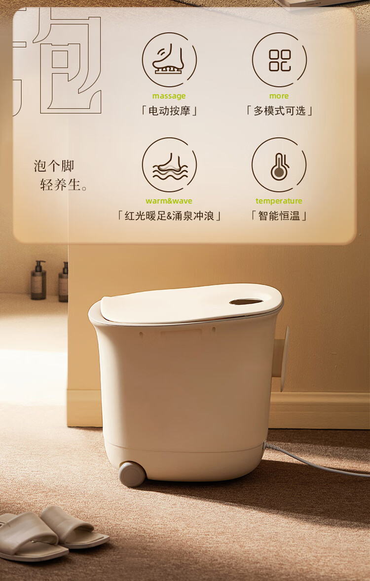 小熊(Bear)足浴盆泡脚桶洗脚泡脚盆 电动按摩恒温加热银离子高深桶送男女朋友情侣好物母亲父亲节中秋节礼物 【配漏电保护开关】ZYP-C08U5-P01