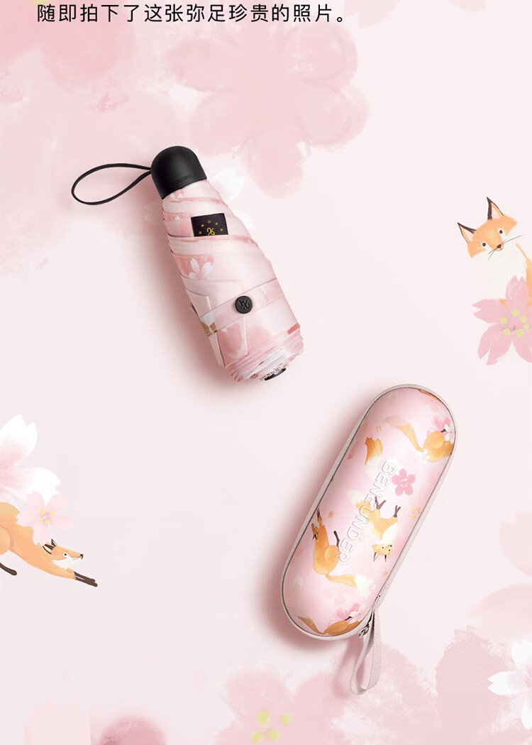 红叶(Hong Ye) 太阳伞五折伞便携防晒防紫外线遮阳伞女防晒伞晴雨两用胶囊系列 静谧蓝+胶囊盒