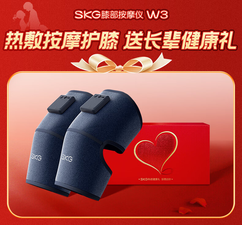 SKG膝盖按摩仪器膝部电加热敷理疗仪关节疼痛腿部保暖老寒腿护膝 陈梦同款520情人节礼物送男女友老婆 【升级按摩+热敷】W3限定礼盒款-两只装