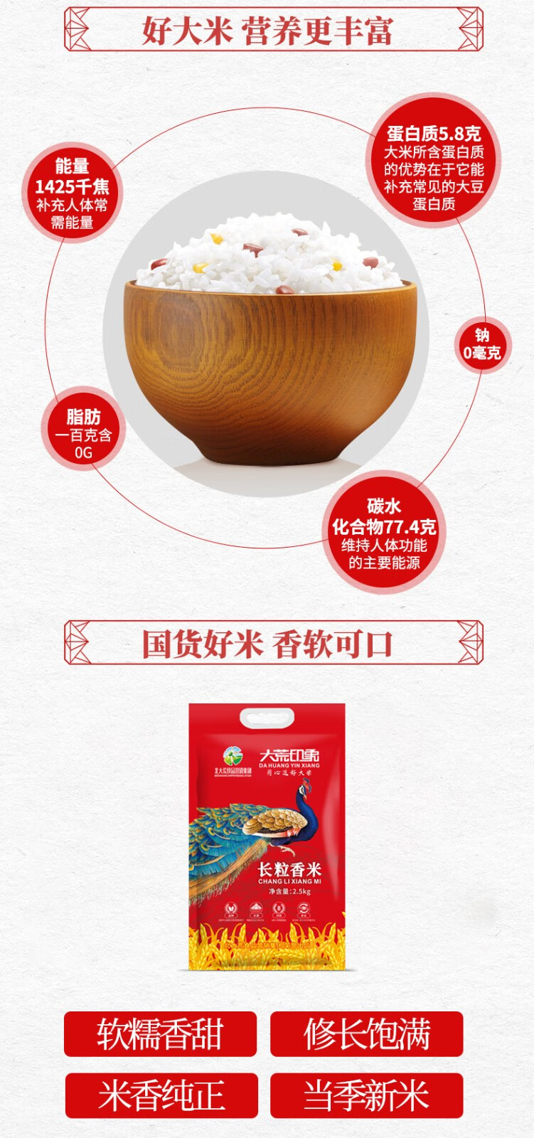 印象大荒2023年新米上市长粒香大米2.5kg真空包装团购 红色