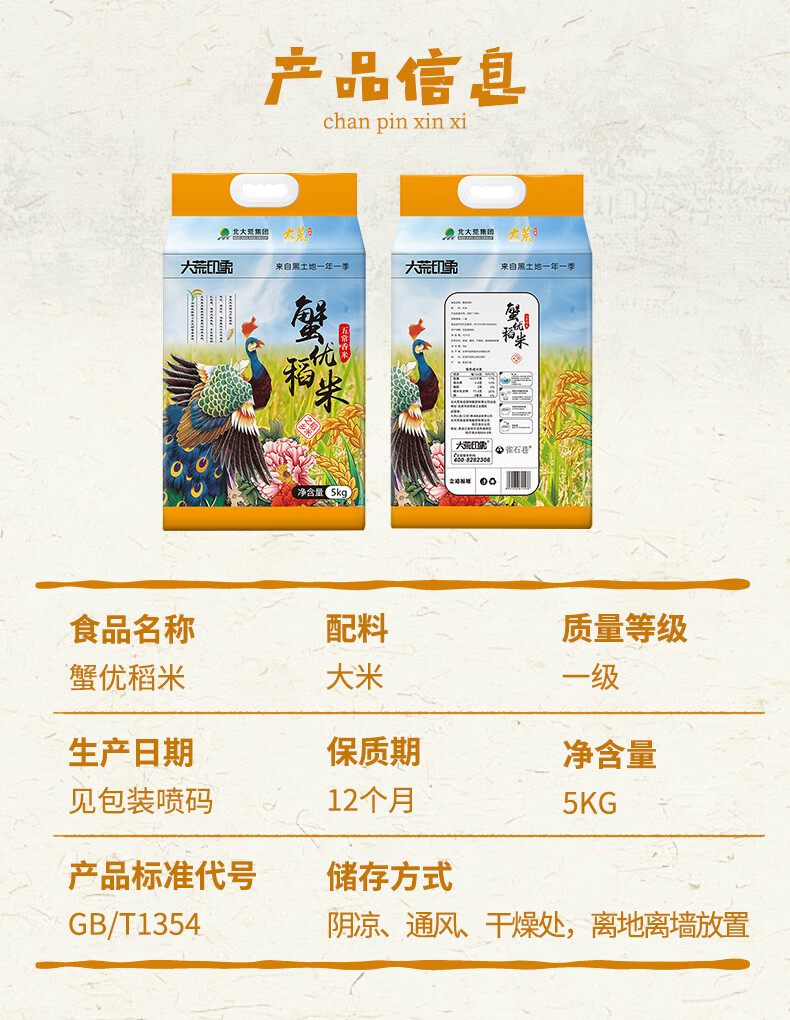 新大荒印象2024新米上市大荒印象蟹优稻五常香米5kg 长粒香大米5kg 5kg