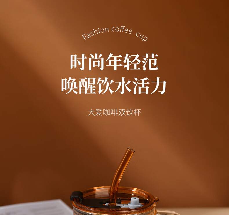 MOM 吸管杯玻璃水杯咖啡杯商务礼品批发活动礼采购送客户6127/6128 带盖吸管玻璃杯400ml