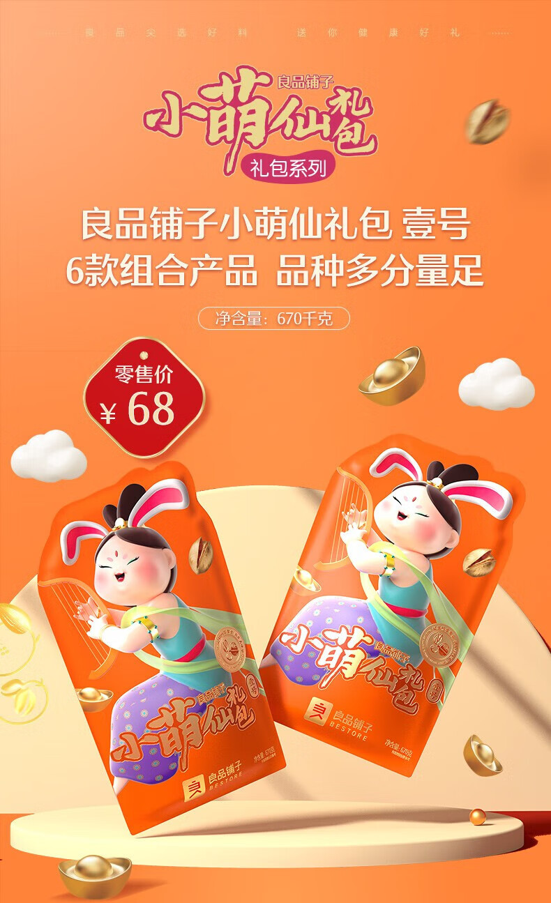 良品铺子干果礼盒每日坚果炒货休闲零食大礼包员工福利端午节礼品 良品小萌仙礼包-670g壹号