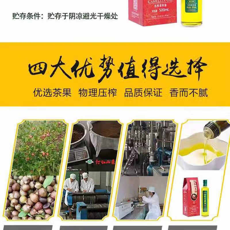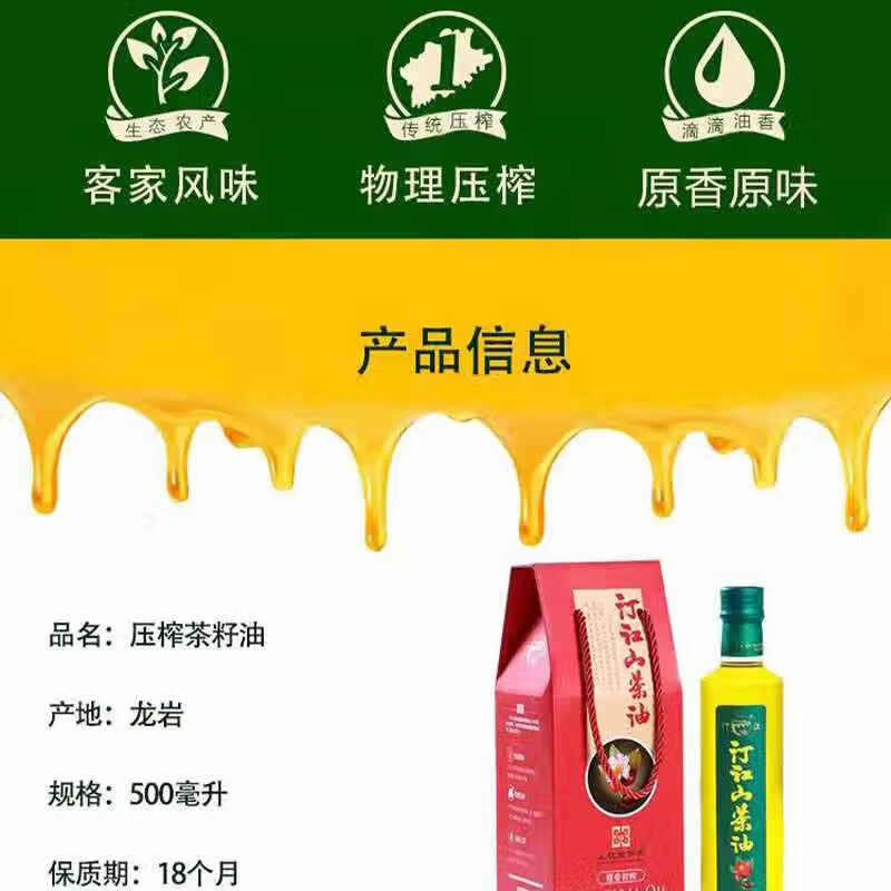 汀江山茶油茶籽油食用油物理压榨茶油原味无添加纯正山茶油瓶装礼盒 山茶油500ml家庭装