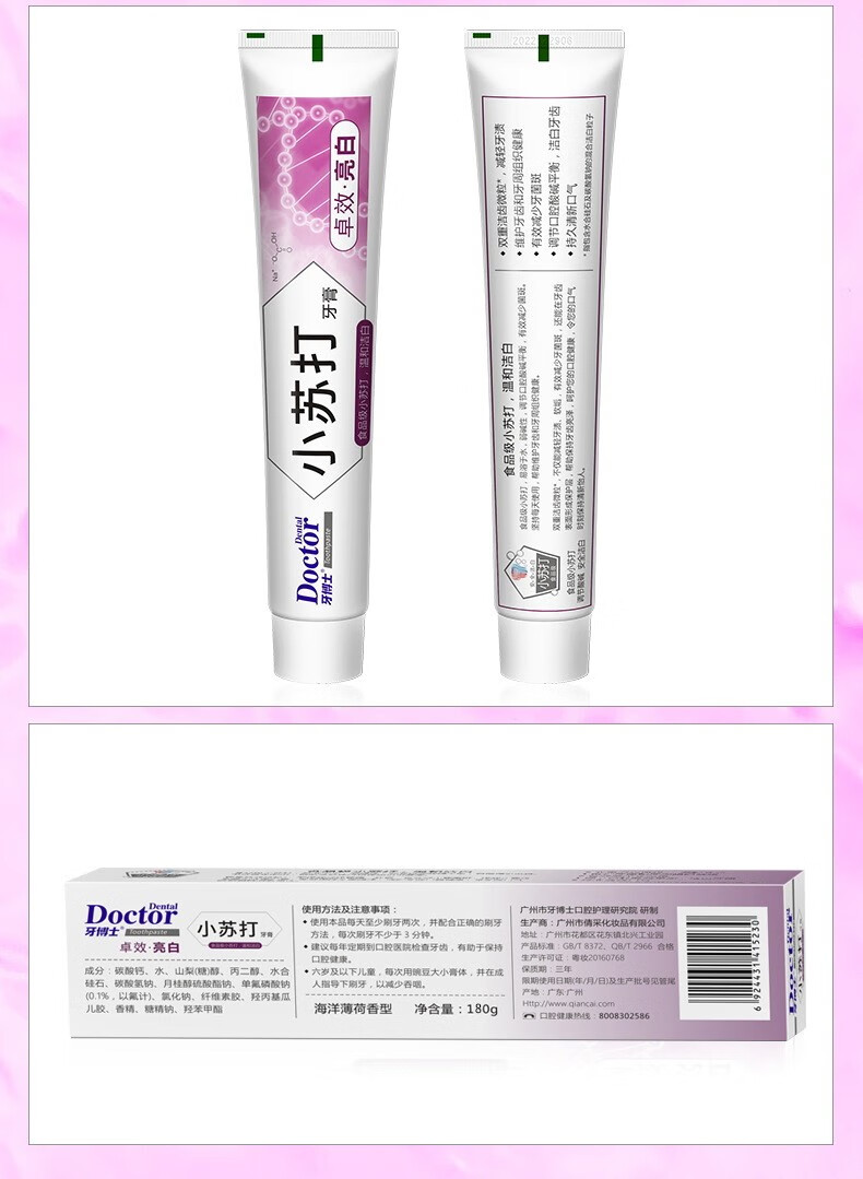 牙博士小苏打牙膏薄荷味去渍去黄180g +清火+清新祛口气(3支)540g 180g