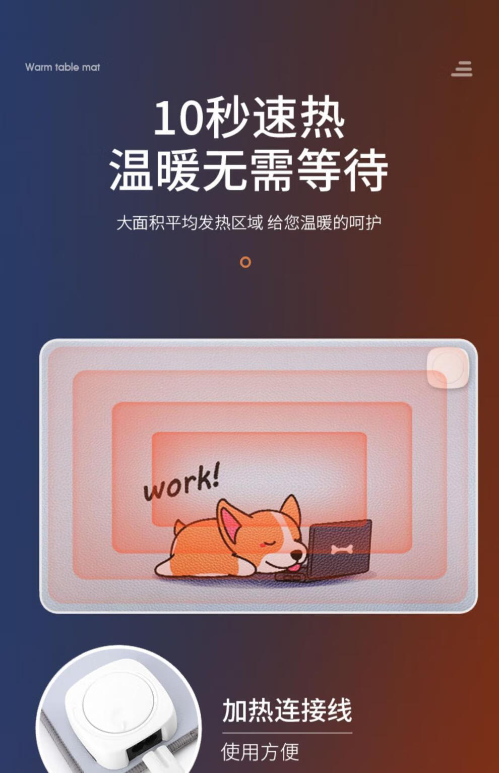 南极人加热鼠标垫超大发热暖桌垫办公室电脑桌垫桌面学生写字暖手 工作柯基【全新升级 60*36cm】无