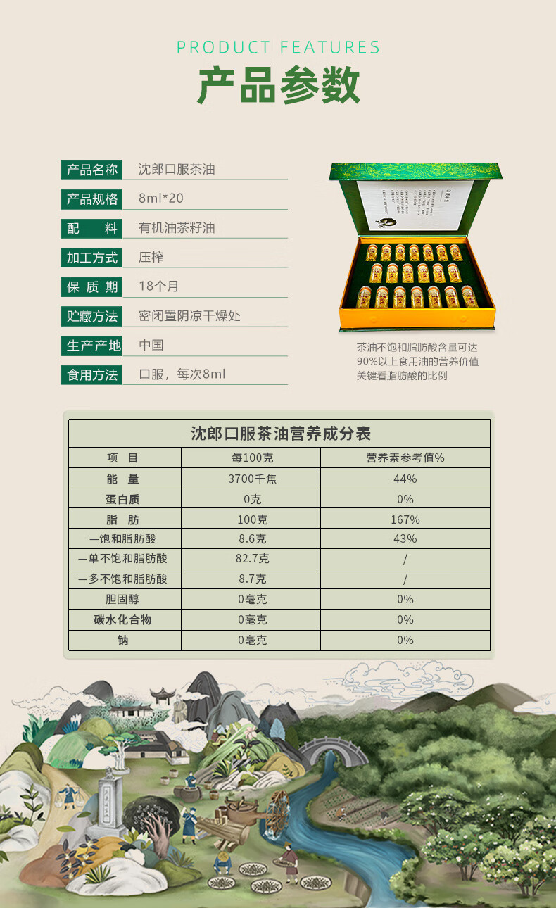 沈郎乡 双有机口服山茶油 头道初榨茶籽油物理压榨食用油 饮酒前专属 沈郎乡 有机口服茶油8ml*20礼盒