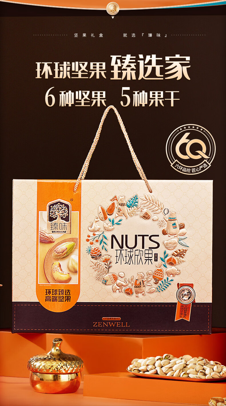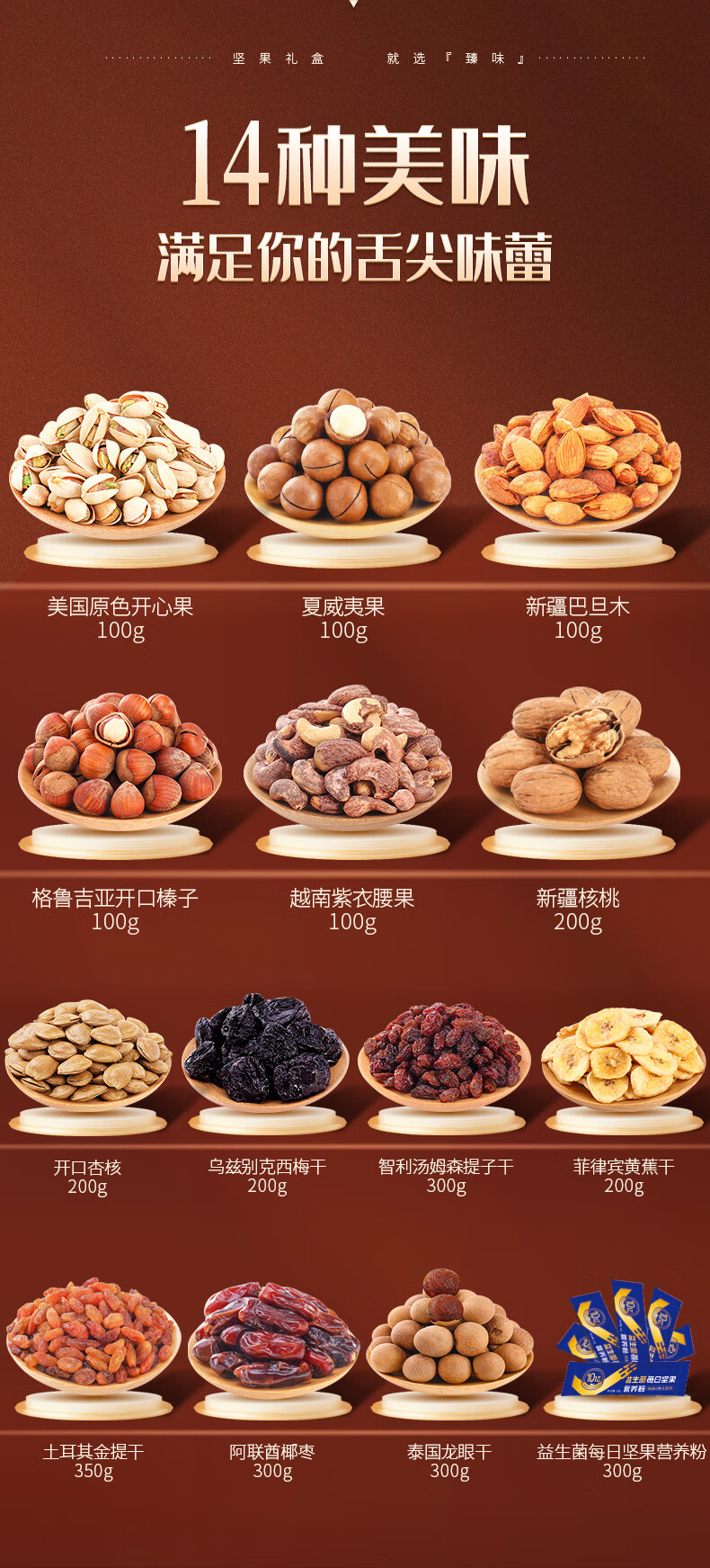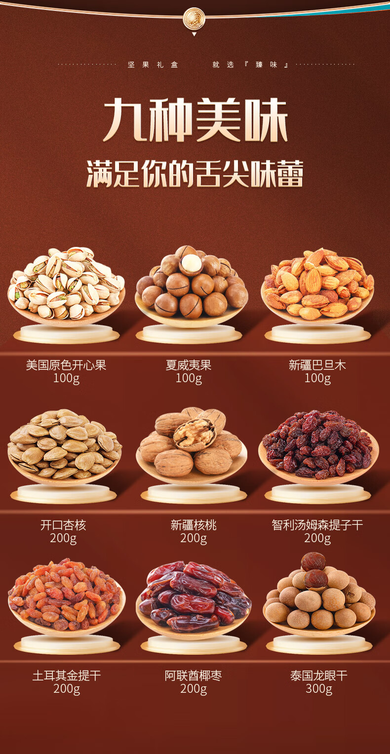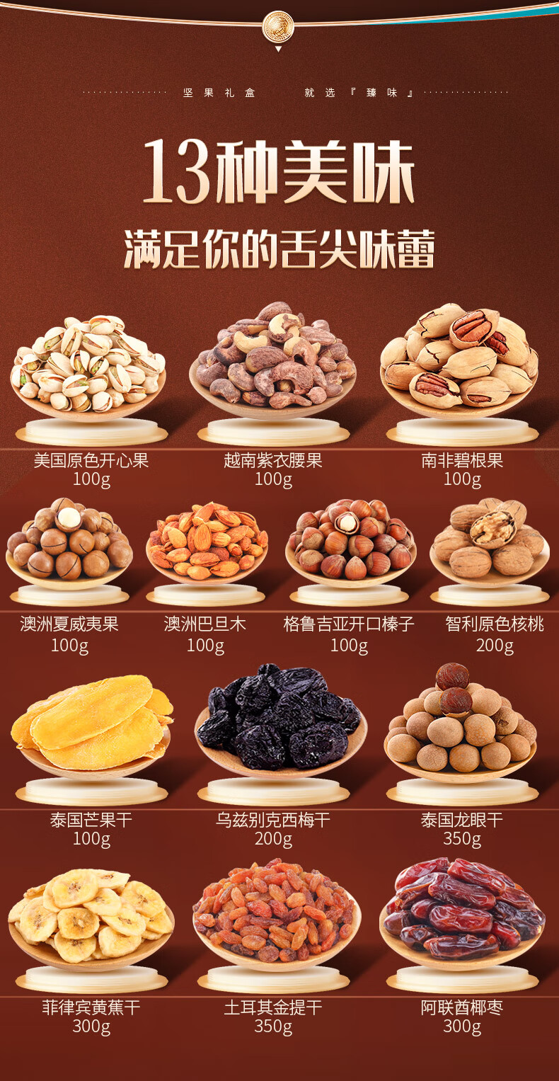 臻味年货高端每日坚果礼盒干果蜜饯水果干营养零食企业团购福利送礼品 21-环球美味 1665g【10种坚果果干】
