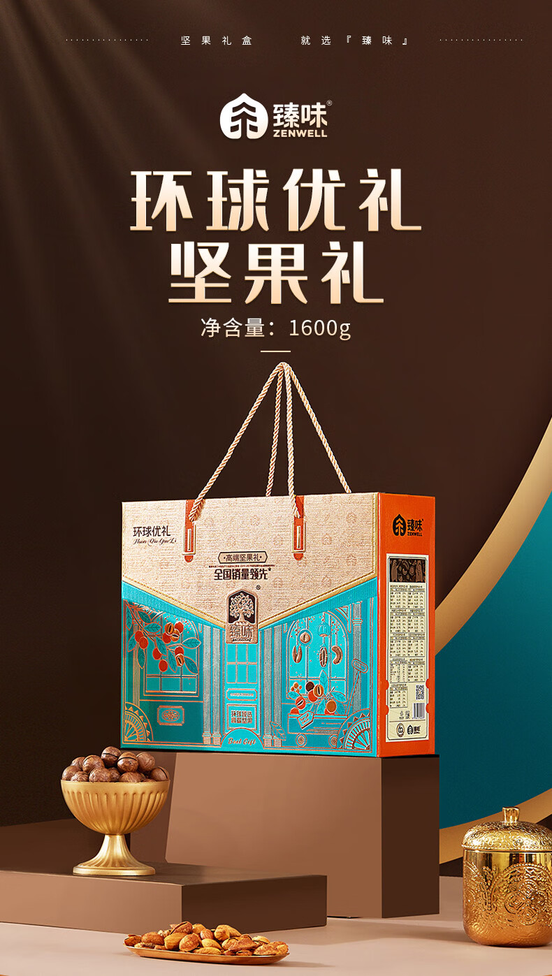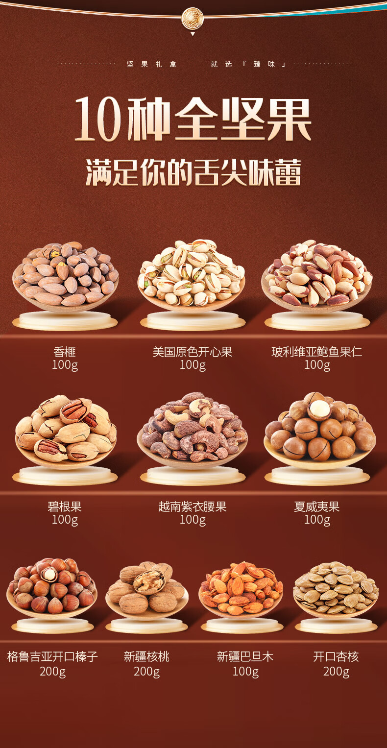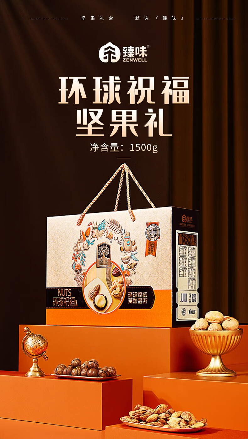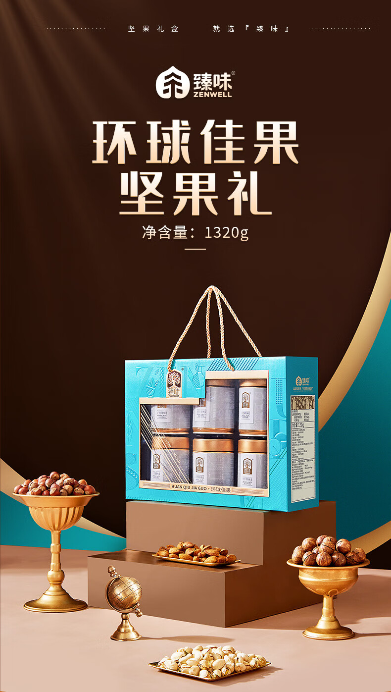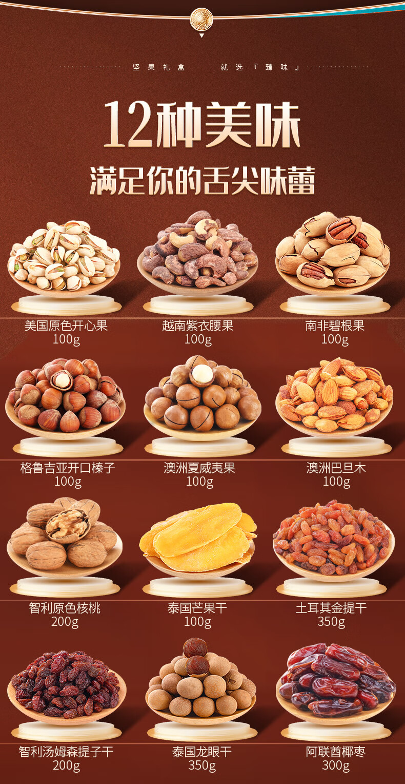 臻味年货高端每日坚果礼盒干果蜜饯水果干营养零食企业团购福利送礼品 21-环球美味 1665g【10种坚果果干】