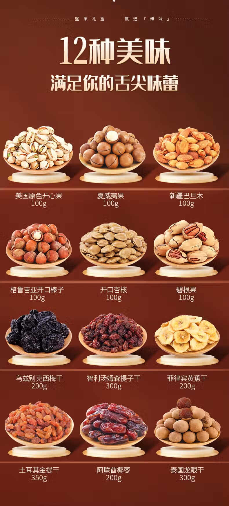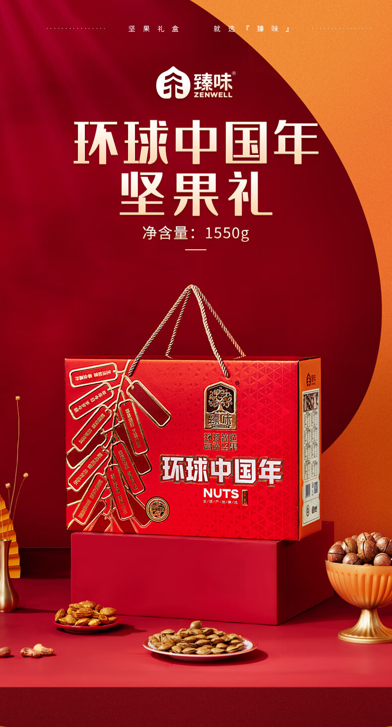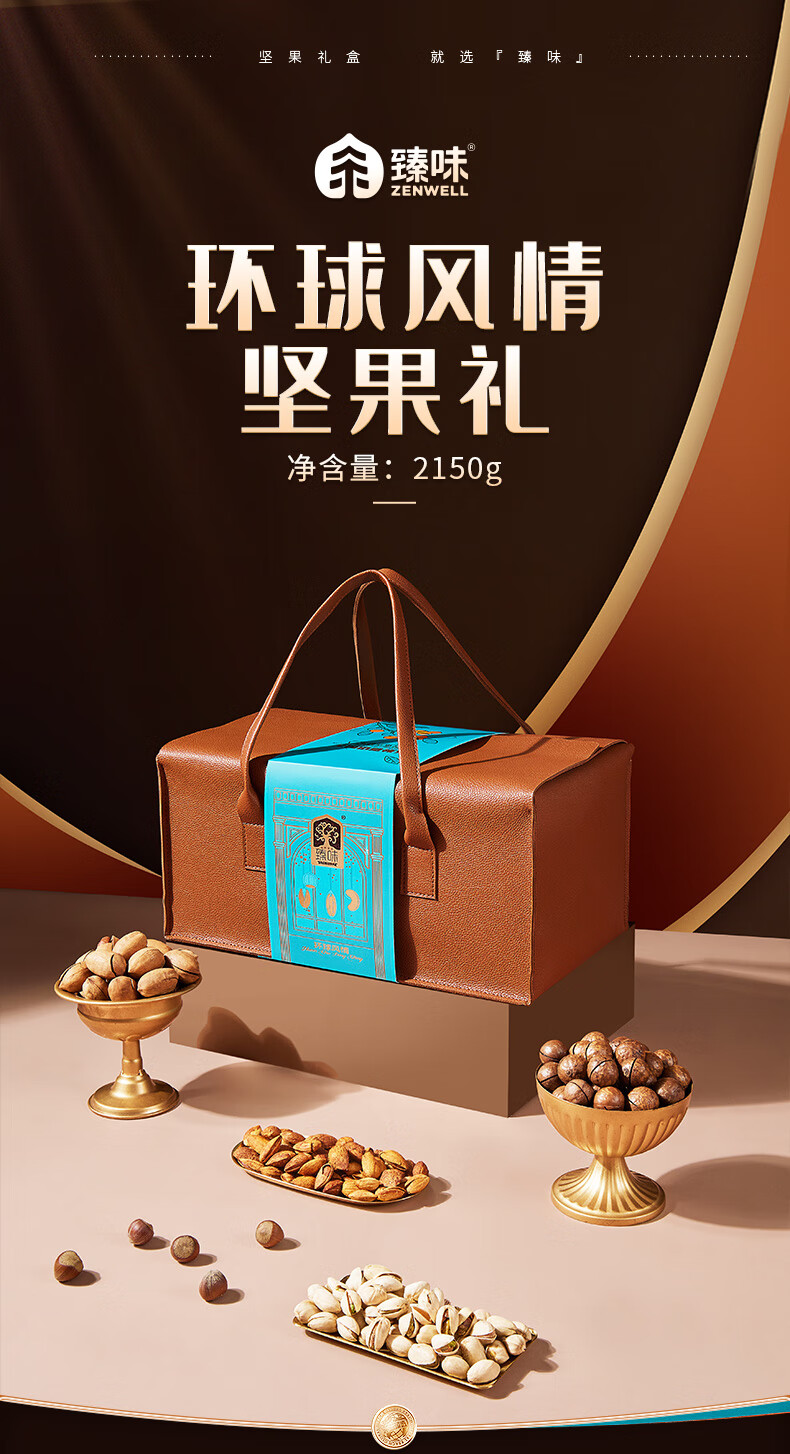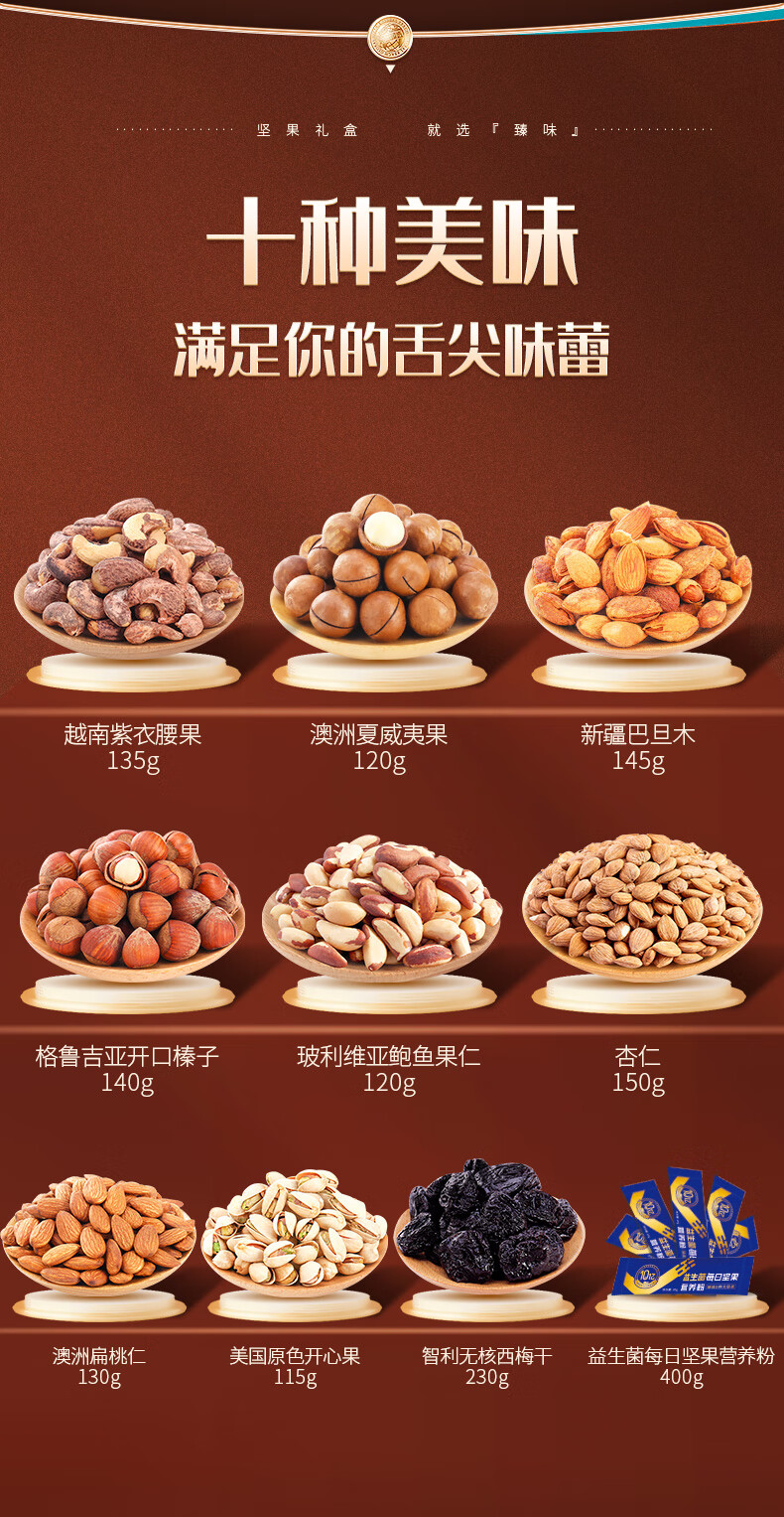 臻味年货高端每日坚果礼盒干果蜜饯水果干营养零食企业团购福利送礼品 21-环球美味 1665g【10种坚果果干】