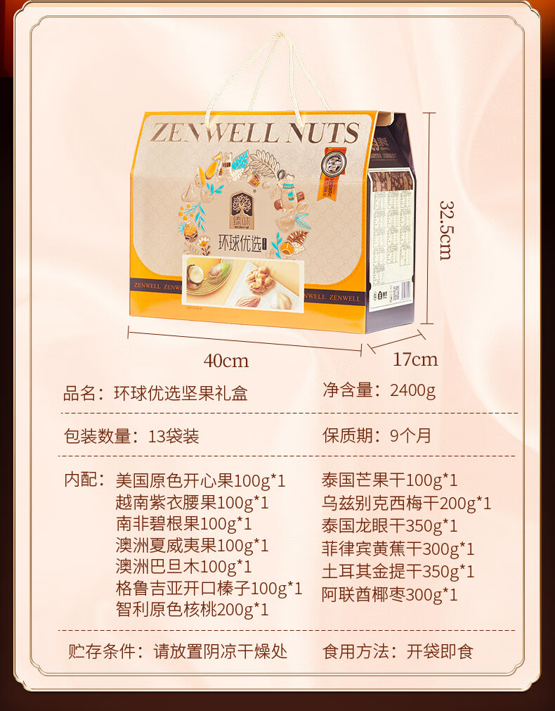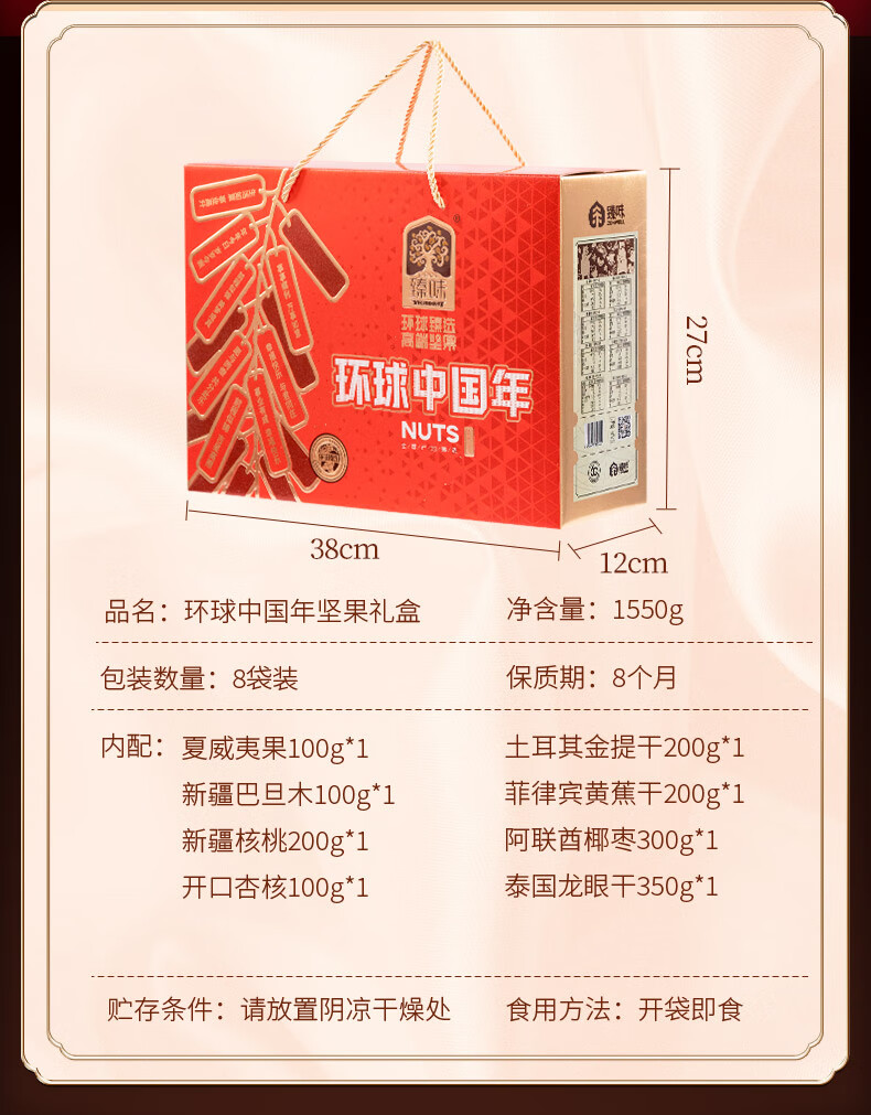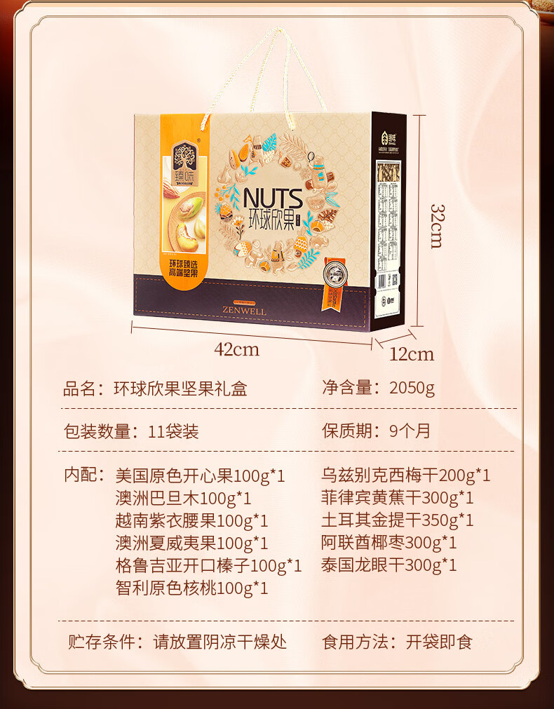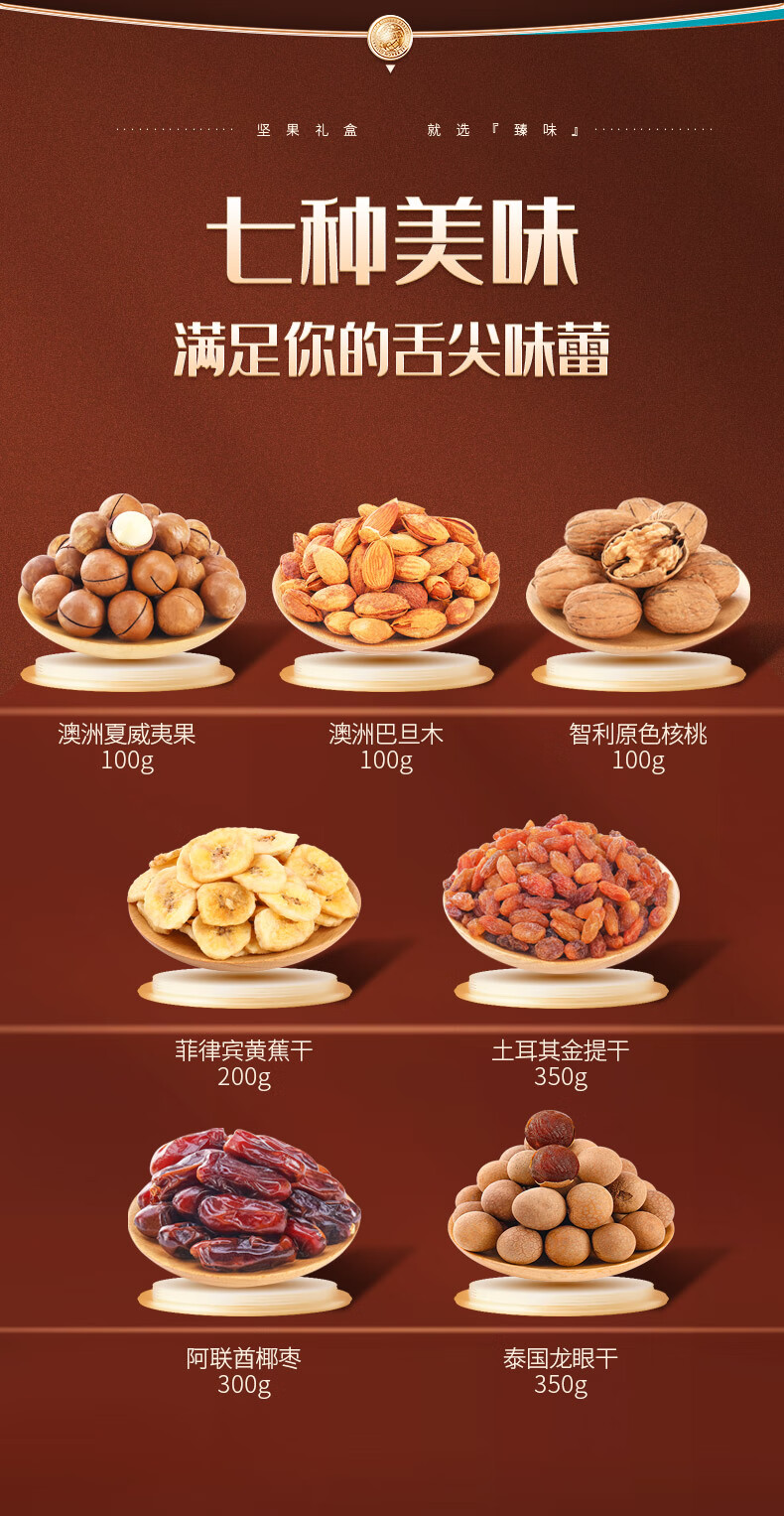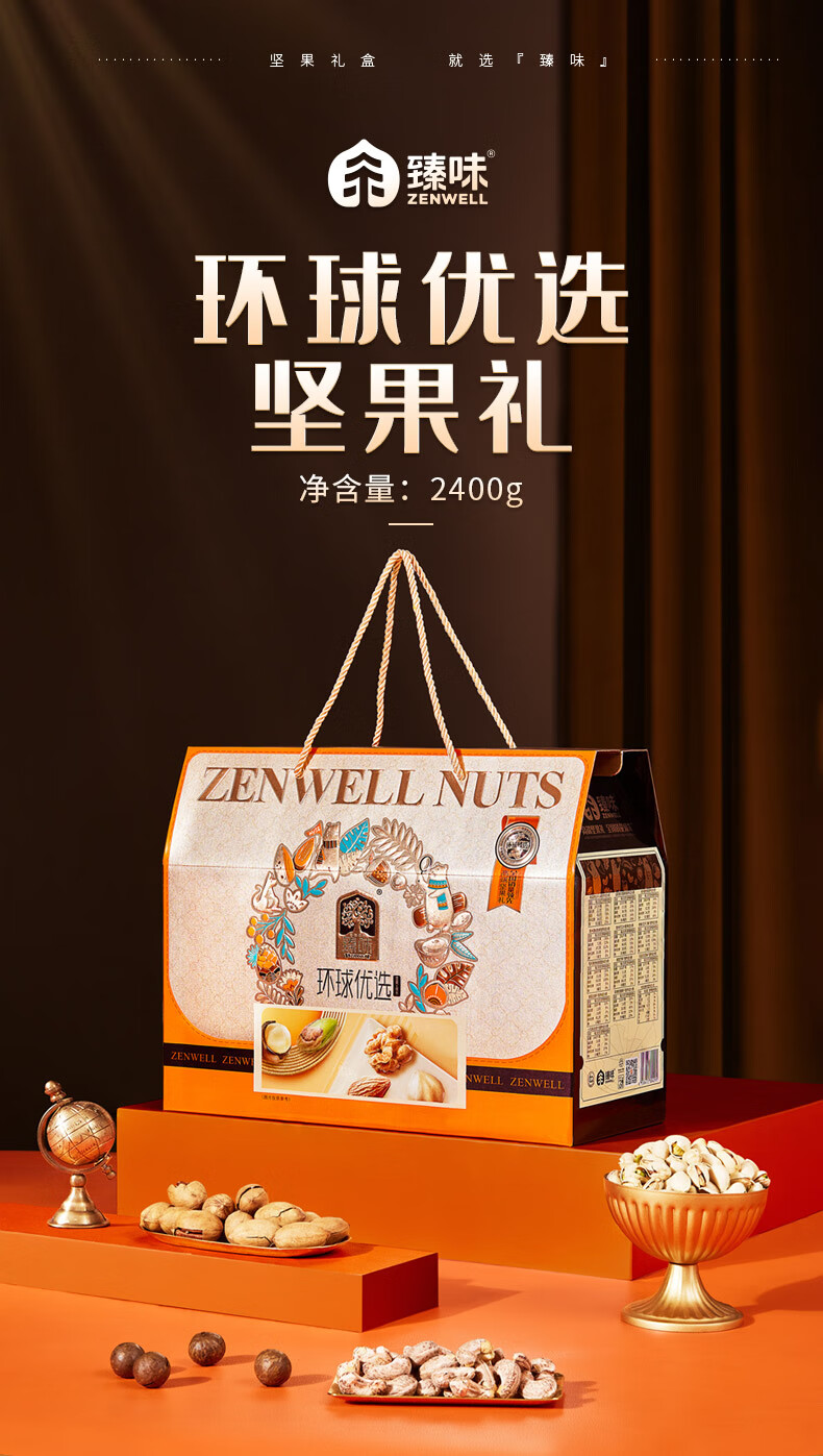 臻味年货高端每日坚果礼盒干果蜜饯水果干营养零食企业团购福利送礼品 21-环球美味 1665g【10种坚果果干】