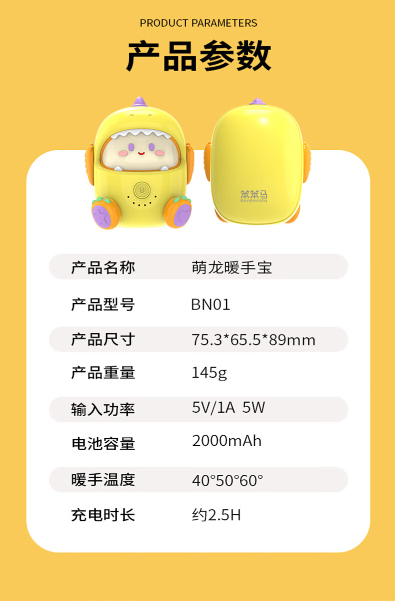 笨笨马BenBenMa 暖手宝充电宝小巧便携续航时间长适合送女友闺蜜家人BN01 黄色