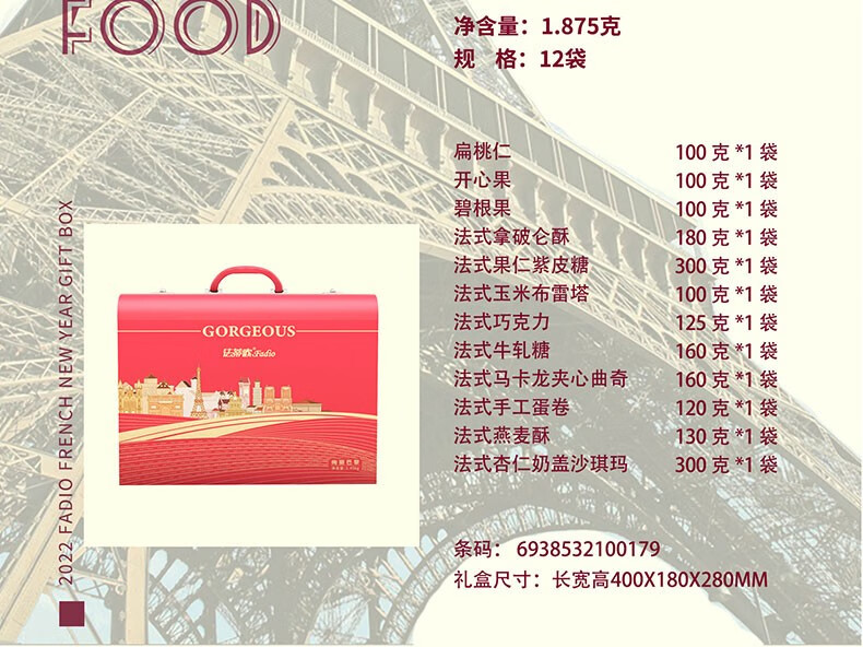 法蒂欧坚果礼盒糕点糖果巧克力组合休闲零食大礼包节日礼品送礼 魅力巴黎1735g