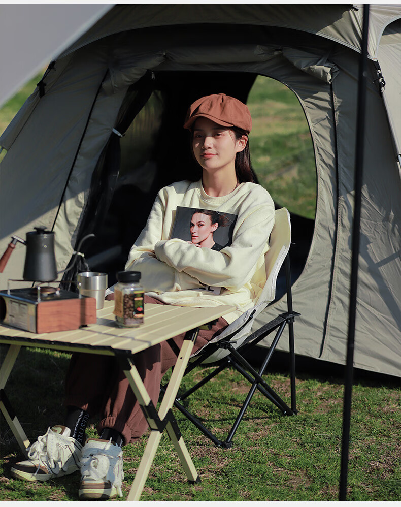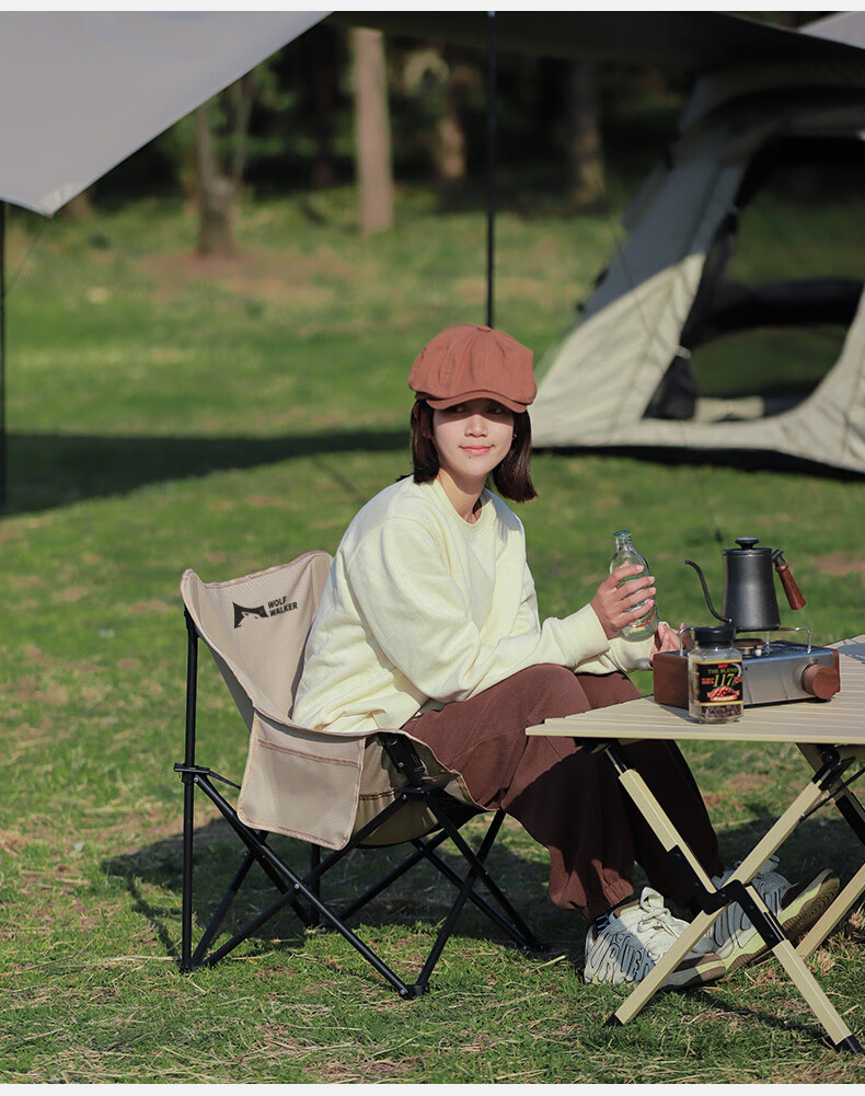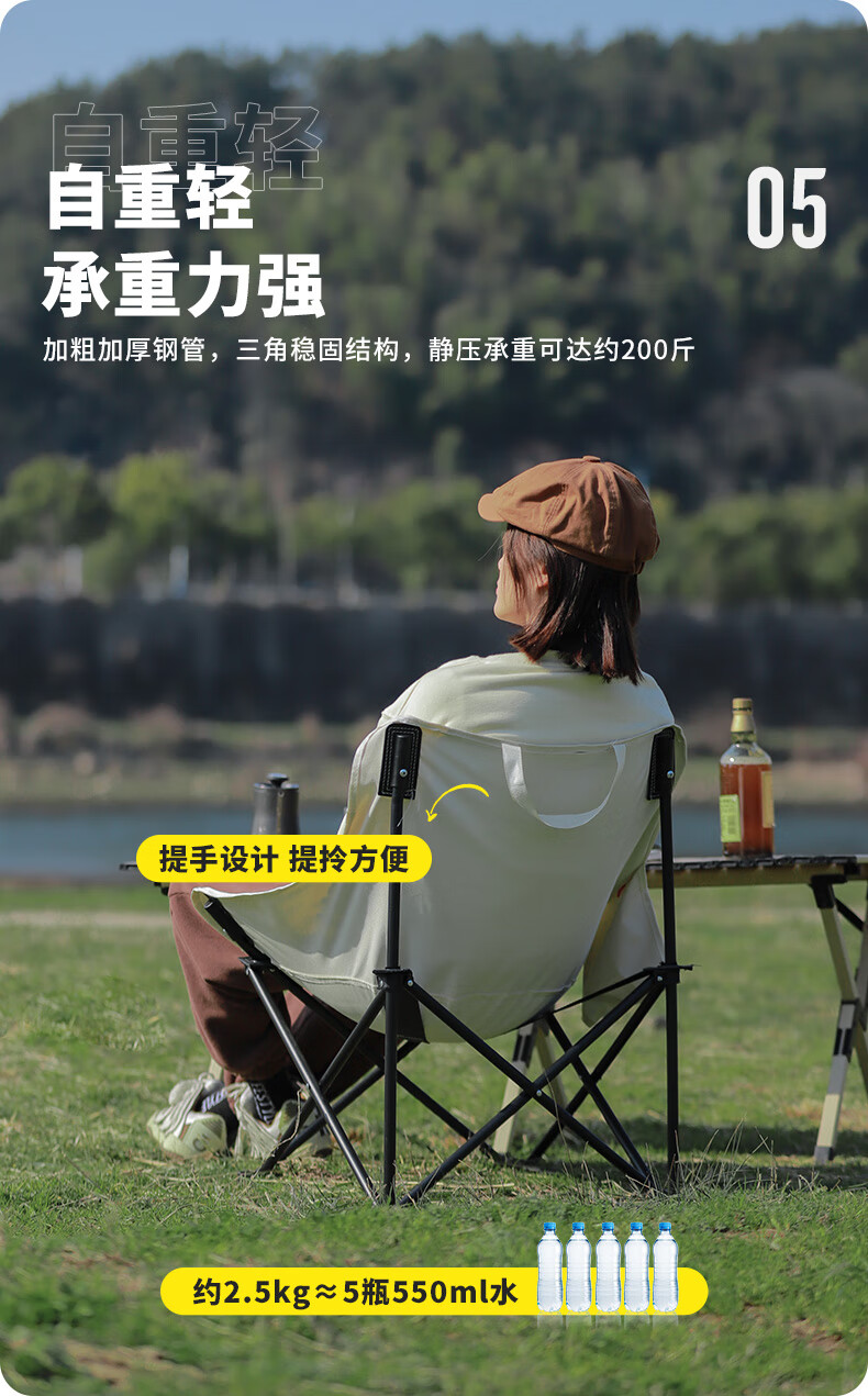 狼行者户外折叠椅露营板凳靠背椅子便携野营月亮椅坐躺椅凳子钓鱼凳马扎 白色