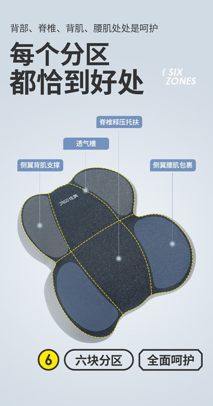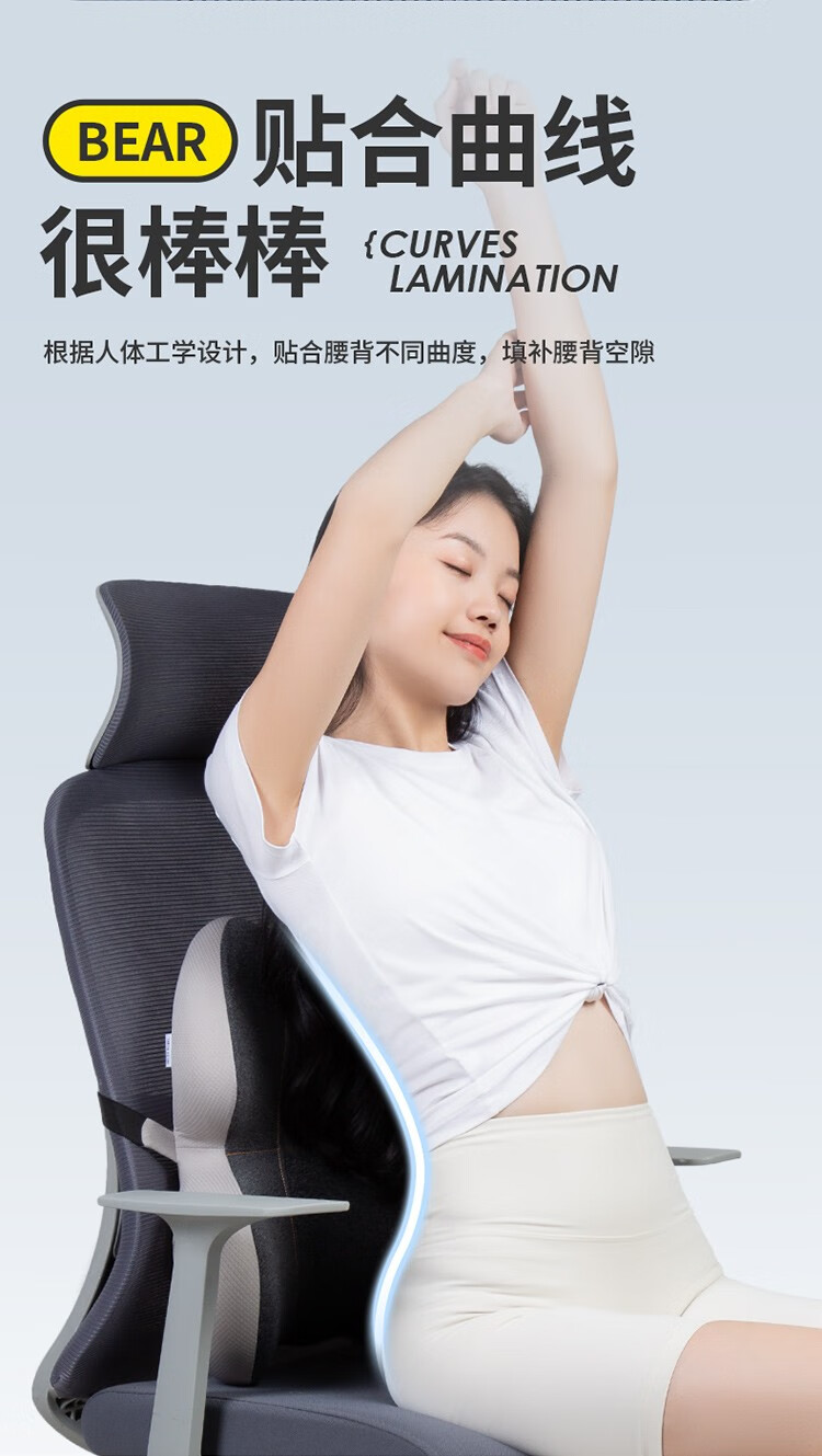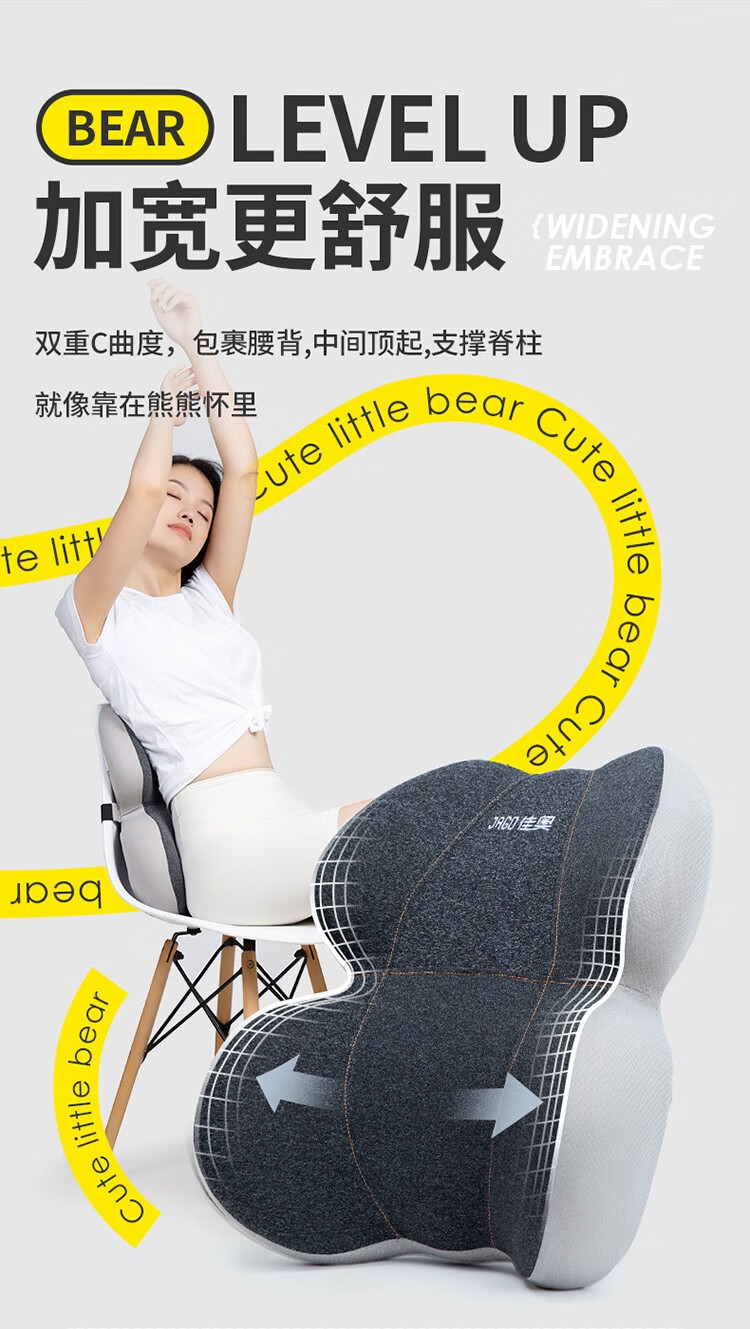 佳奥办公室护腰靠垫抱枕腰靠座椅腰枕靠枕椅子久坐腰部支撑慢回弹靠背 黑骑士套装