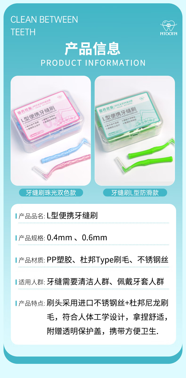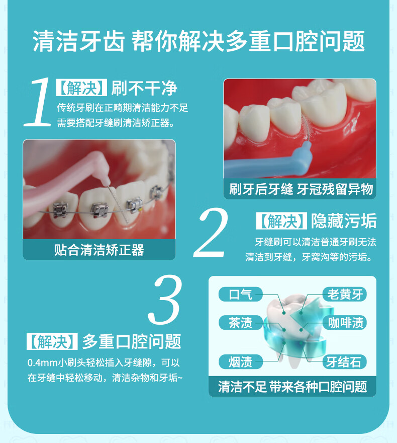 皓齿舒国药盒装牙缝刷超细间隙刷矫正牙齿正畸牙刷牙软毛齿间刷牙线 0.6mm20支盒装牙缝刷