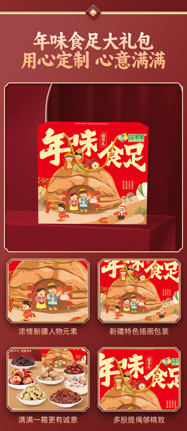 疆果果端午坚果礼盒零食大礼包每日坚果礼箱核桃葡萄干坚果炒货混合零食 年味食足Pro大礼包1820g