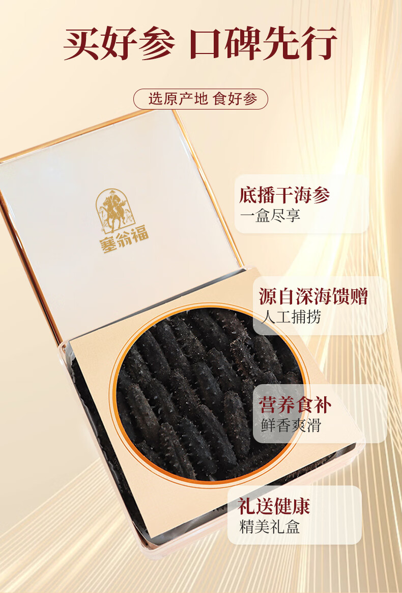 塞翁福 大连底播海参干货辽刺参海鲜水产礼盒 AAAA干海参225g