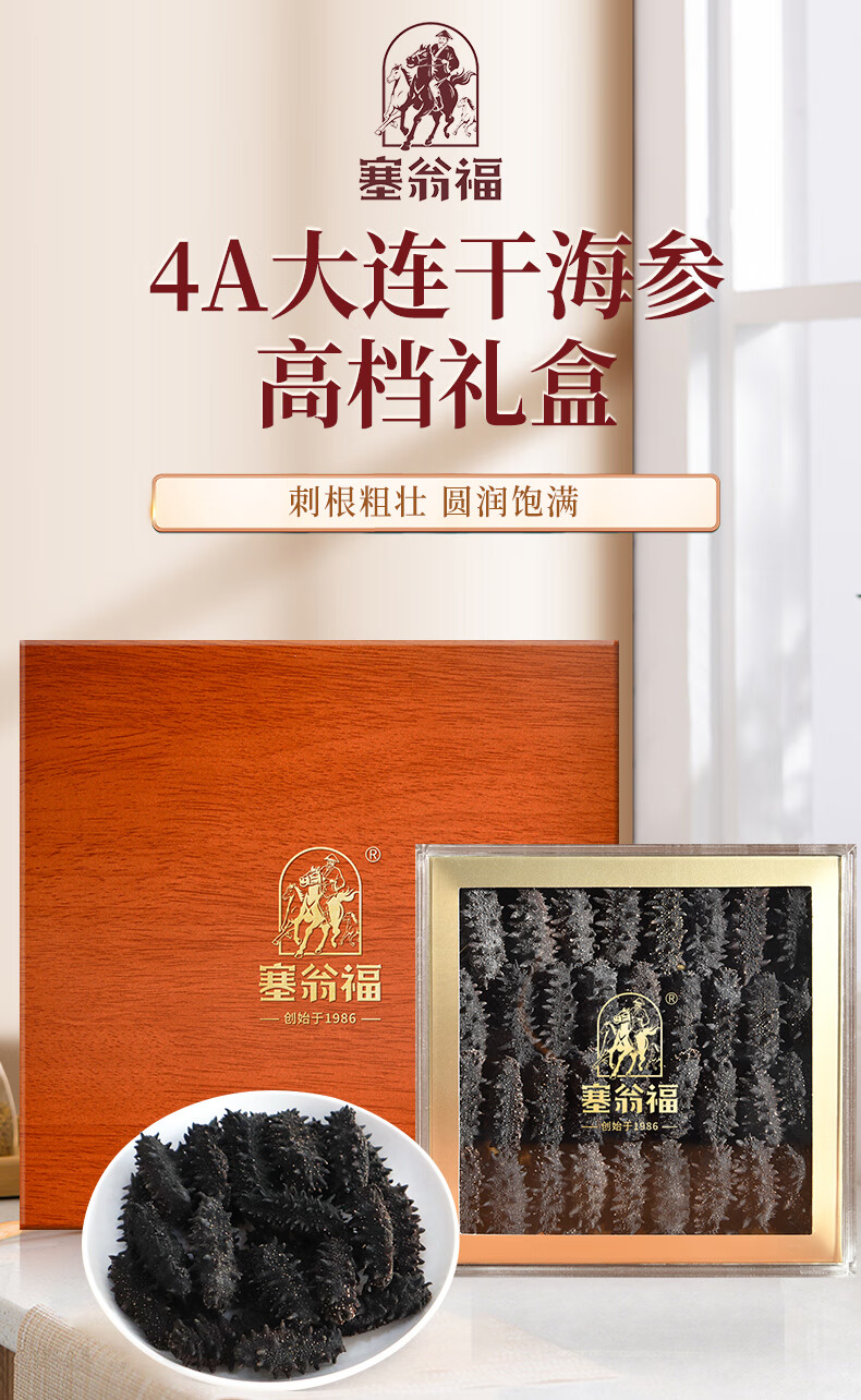 塞翁福 大连底播海参干货辽刺参海鲜水产礼盒 AAAA干海参400g