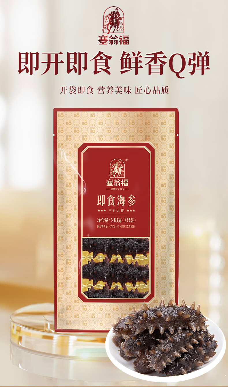 塞翁福 大连即食海参7只装 固形物75%以上 即食辽刺参 即食海参218g