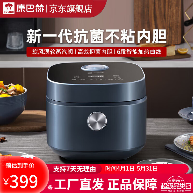 康巴赫旋风电饭煲家用智能电磁加热大容量多功能智能预约快煮抗菌电饭锅4L 旋风电饭煲 4L