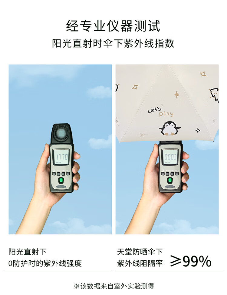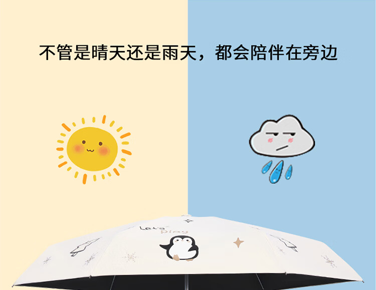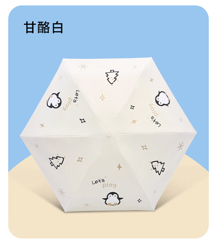 天堂伞轻小便携口袋胶囊伞防晒太阳伞企鹅学生晴雨伞两用男女 甘酪白