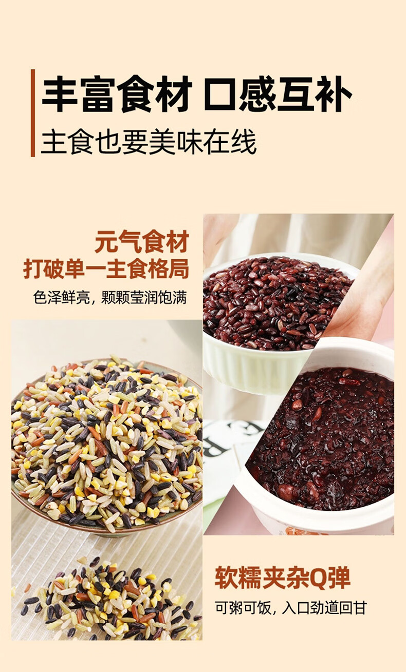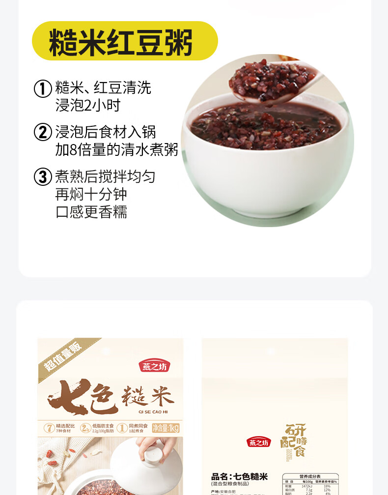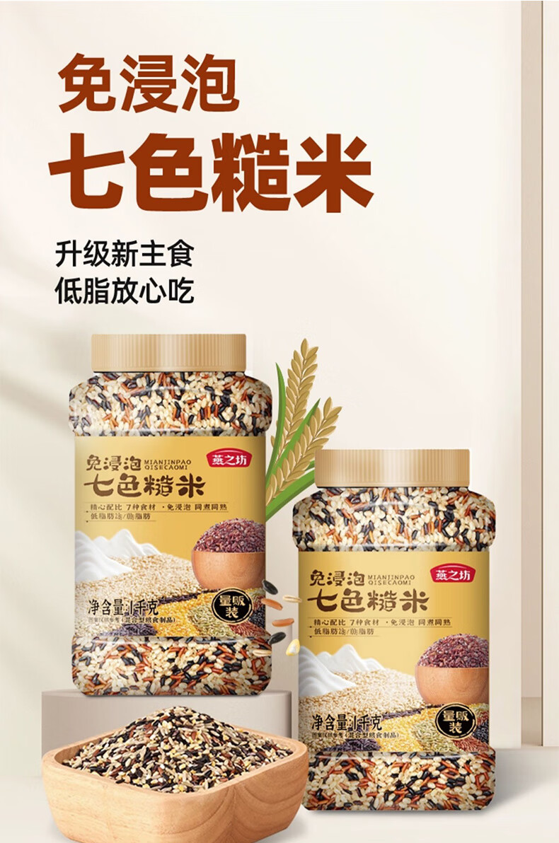 燕之坊 七色糙米 五谷杂粮粗粮米玉米 黑米饱腹代餐健身 轻食米饭营养粥 免浸泡七色糙米 1kg*1袋