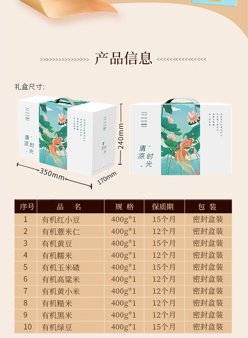 姚朵朵夏季防暑降温送清凉企业团购员工福利高温慰问团购集采大礼包 清凉时光有机杂粮礼盒4000g