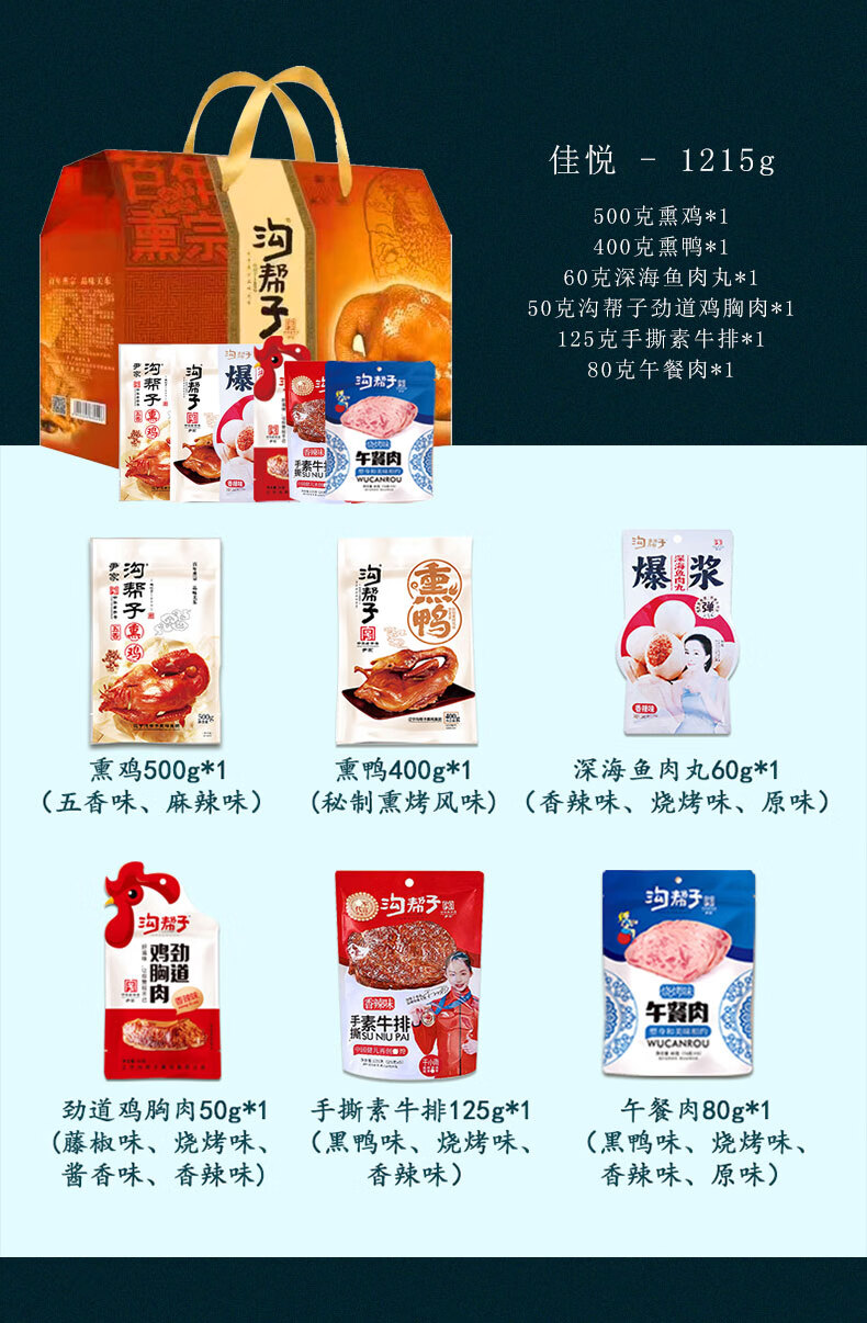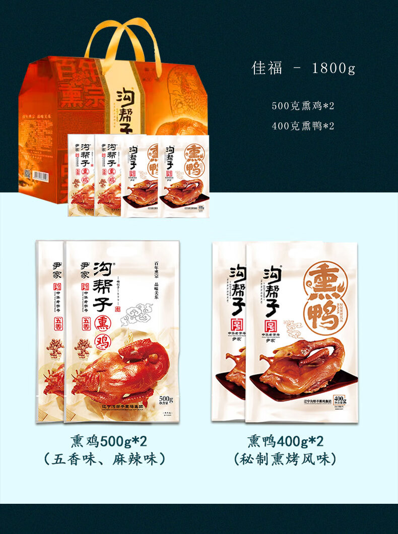 沟帮子熏鸡/熏鸭熟食礼盒 开袋即食烧鸡肉食礼盒 佳福1800g
