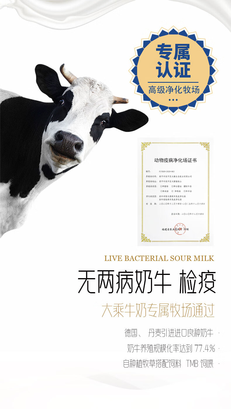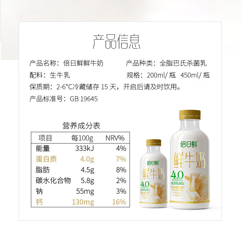 大乘鲜牛奶 4.0蛋白质 200ml/瓶