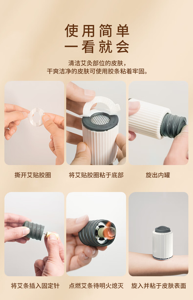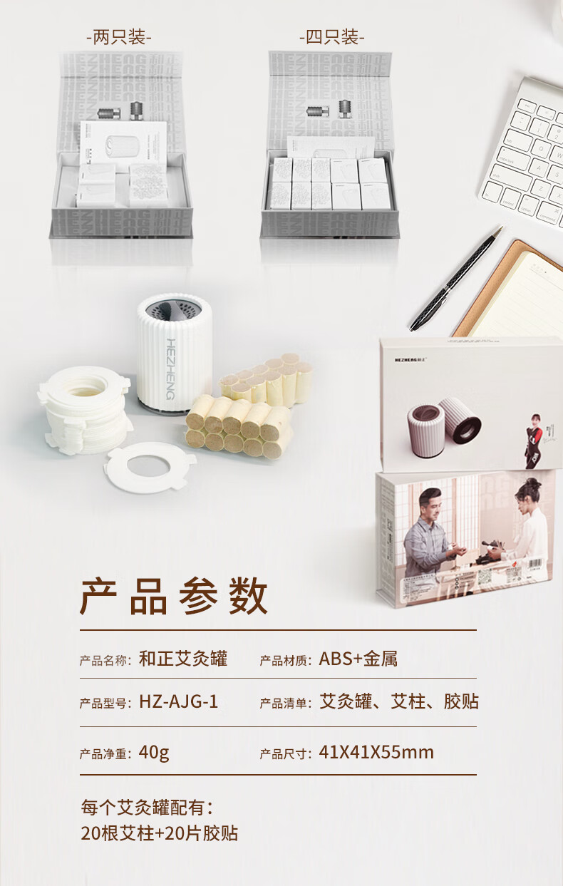 和正艾灸罐 随身灸 家用便携加热艾灸盒 艾条艾柱艾灸贴 小灸罐熏蒸仪 送女友生日礼物 艾灸罐 四只装 80支艾柱+80个胶贴