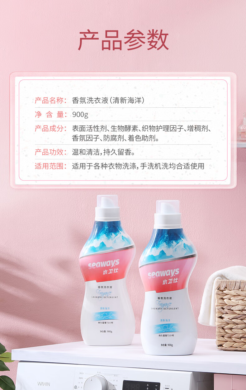 水卫仕留香洗衣液持久留香72小时衣物护理香水型 清新海洋900g1瓶