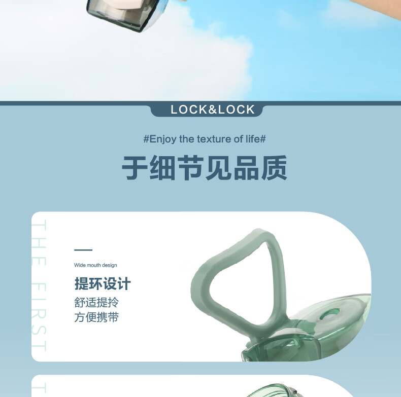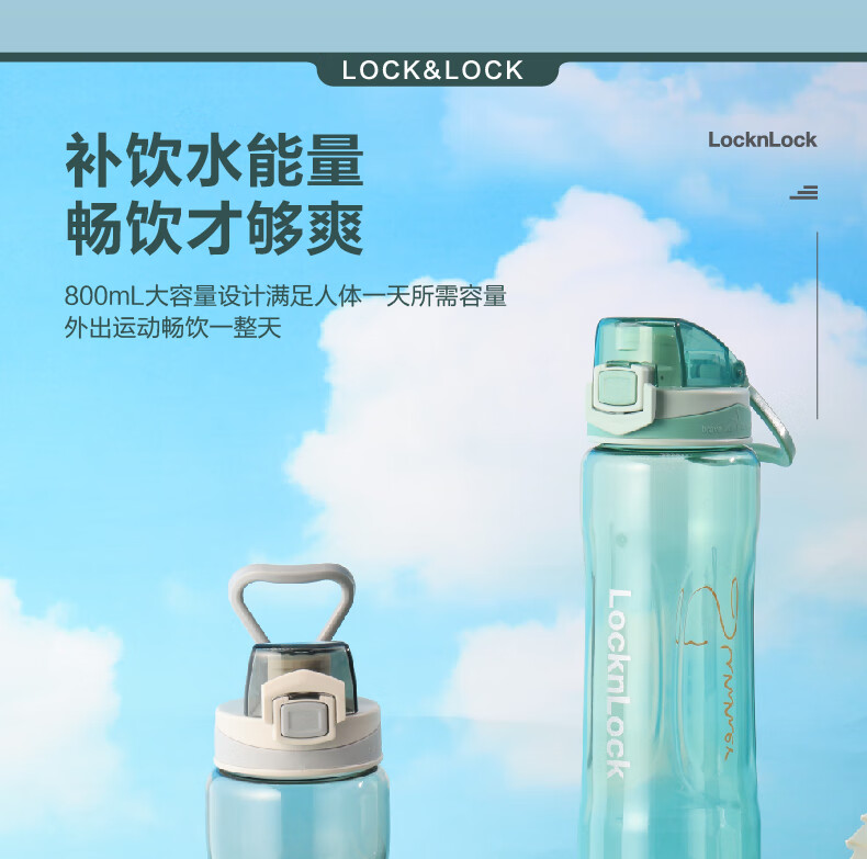 乐扣乐扣(locknlock)塑料杯大容量儿童可爱吸管杯运动水杯子男女学生运动水杯高颜值 HLC682GRNFU 800ml 1个